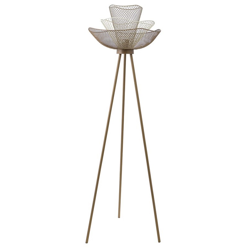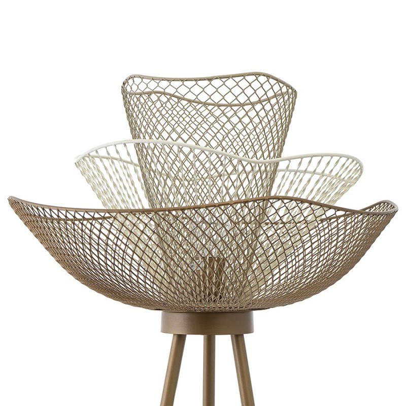 Торшер Vinger от бренда Bergenson Bjorn – прекрасный способ добавить интерьеру характер и индивидуальность. Напольный светильник привлекает качественным исполнением и интересным дизайном. Его плафон из металлической сетки рисует на стенах и потолке живописные тени, создавая в помещении волшебную атмосферу.Особенности и преимущества:- Светильник с плафоном из железной сетки смотрится необычно и идеально подходит в качестве акцентного элемента. - Металлическое основание в виде треноги обеспечивает конструкции хорошую устойчивость. - Удлиненный провод позволяет перемещать торшер по комнате и устанавливать его в любом удобном месте. - Популярный цоколь Е27 подходит к большинству ламп, включая энергосберегающие источники света.Материал: железо. Размеры: 53х53х153 см. Цвет: белый/бежевый/золотой. Тип цоколя: Е27. Степень пылевлагозащиты: IP20. Максимальная мощность ламп: 25 Вт. Напряжение: 220-240 В. Длина провода: 3,5 м. Переключатель: ножной. Площадь освещения: 1,7 кв.м. Лампы в комплекте: нет.Для удаления пыли и загрязнений используйте сухую или слегка влажную мягкую ткань. Запрещается применение абразивных материалов и агрессивной бытовой химии. Перед очищением убедитесь, что светильник не подключен к сети. Осветительный прибор со степенью пылевлагозащиты IP20 можно устанавливать только в сухих помещениях, где отсутствует вероятность попадания на корпус брызг воды и исключается любое механическое воздействие.