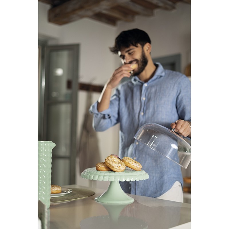 Блюдо Tiffany станет украшением праздничного стола или уютного чаепития на свежем воздухе. Оно идеально подойдет для подачи тортов, а также выпечки и всевозможных сладостей. Крышка в форме купола защитит продукты от заветривания, пыли и насекомых, что особенно важно во время трапез в саду или на открытой веранде. Рельефная форма в сочетании с прозрачным материалом заставляют поверхность посуды сверкать и переливаться на свету, делая ее центром притяжения взглядов.Блюдо изготовлено из высококачественного пластика, устойчивого к износу и повреждениям, крышка – из акрила. Материалы не содержат вредных примесей и бисфенола-А.Коллекция Tiffany от итальянского бренда Guzzini – это воплощение роскоши, оригинальности и утонченного вкуса. Создавая эту линейку, дизайнеры Пио и Тито Тозо вдохновлялись идеей непреходящего стиля и безупречности.Материалы: пластик SAN, акрил. Размеры: 30х30х27 см. Цвет: зеленый.Блюдо рекомендуется мыть вручную.