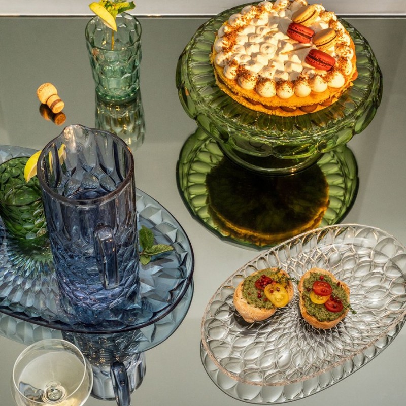 Элегантное блюдо для торта с крышкой Vanity от итальянского бренда Guzzini – необычная посуда, в которой гармонично сочетаются привлекательный дизайн и практичность. Благодаря высокой устойчивости современного органического материала к внешним воздействиям, она идеально подходит для сервировки как в помещении, так и на свежем воздухе. Инновационное акриловое стекло на биооснове получают из растительных отходов. За счет особенной рельефной поверхности и ярких цветов предметы изящно переливаются на свету, что делает их еще более привлекательными.Концепция Vanity строится вокруг посуды с несколькими цветовыми и текстурными сочетаниями в трех хроматических настроениях: Aria, Acqua и Terra, выражающие легкость воздуха, свежесть воды и тепло земли.Материал: акриловое стекло на биооснове. Диаметр: 26,5 см. Высота общая: 29 см. Высота крышки: 16 см.Допускается мытье в посудомоечной машине в режиме деликатной мойки.