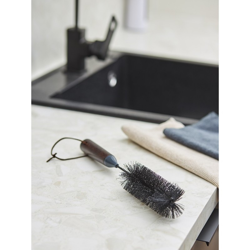 Ершик для посуды Cleans от дизайнерского бренда Smart Solutions эффективно справится с любыми загрязнениями и поможет содержать кухню в идеальной чистоте.Особенности и преимущества:- Аксессуар имеет рукоятку из бамбука, благодаря чему смотрится стильно и удобно сидит в руке. - Мягкие и гибкие щетинки из полипропилена качественно удаляют загрязнения, при этом не царапают поверхность посуды. - Ершик легко очищается обычной водой без применения специальных средств, не впитывает запахи и грязь. - Наличие специального подвеса позволяет компактно хранить аксессуар на настенных держателях.Материалы: полипропилен, бамбук, термопластик. Размеры: 5,5х5,5х34 см.Ершик рекомендуется очищать в теплой мыльной воде после каждого использования.
