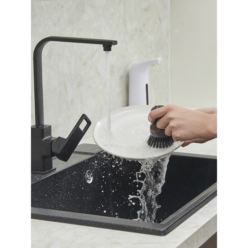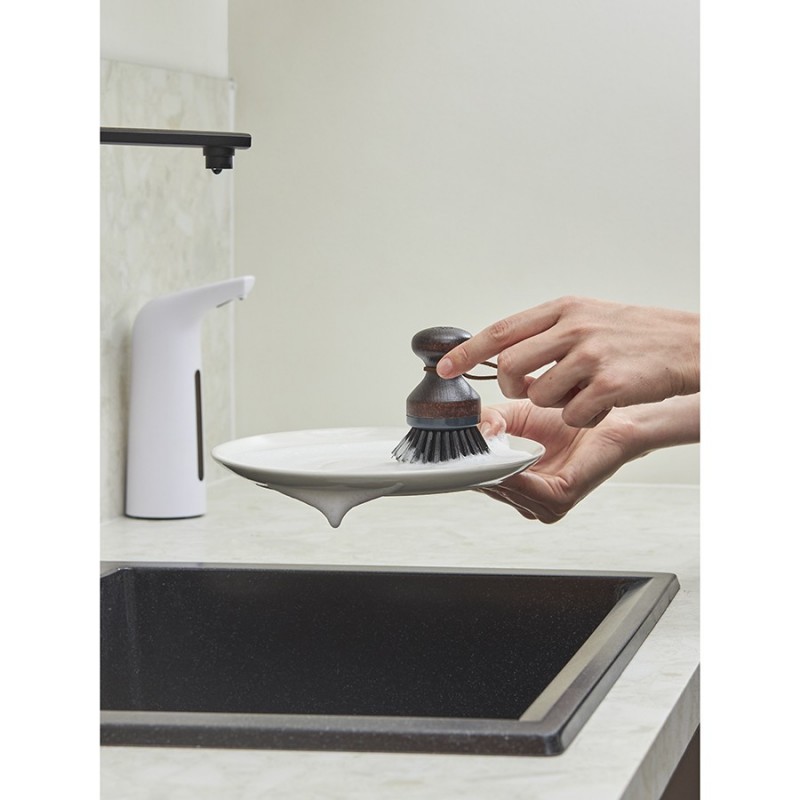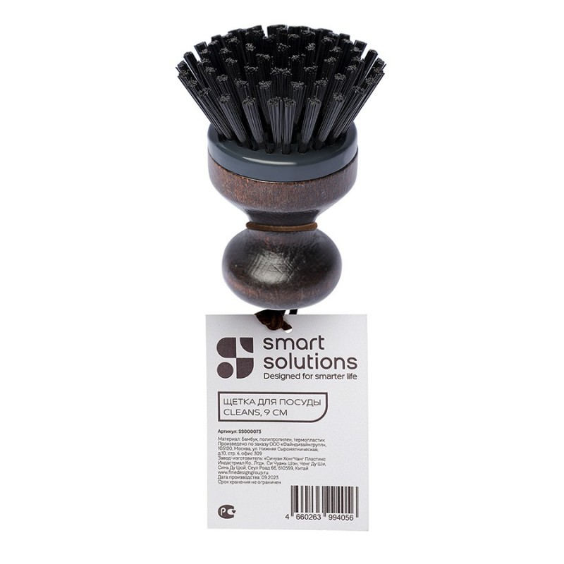 Щетка Cleans от дизайнерского бренда Smart Solutions – компактный и удобный в использовании аксессуар, который поможет качественно очистить посуду от остатков пищи и любых загрязнений, а также подойдет для мытья овощей и уборки различных поверхностей.Особенности и преимущества:- Щетка имеет эргономичную ручку из бамбука – экологичного, прочного и долговечного материала. - Щетина из устойчивого к износу полипропилена качественно удаляет с поверхности посуды любые загрязнения, не царапая ее. - За счет компактности аксессуар не занимает много места на раковине, коврике для сушки посуды или в органайзере. - Благодаря современному дизайну щетка Cleans гармонично вписывается в интерьер любой кухни.Материалы: бамбук, полипропилен, термопластик. Размеры: 6,5х6,5х9 см.Щетку рекомендуется очищать в теплой мыльной воде после каждого использования.