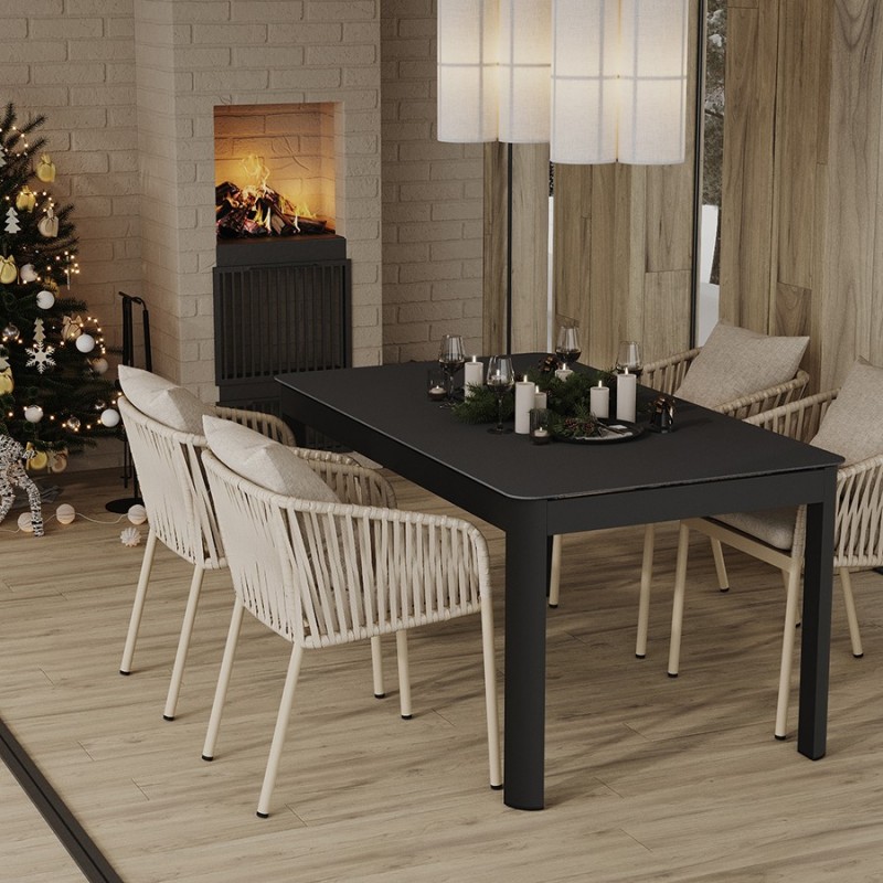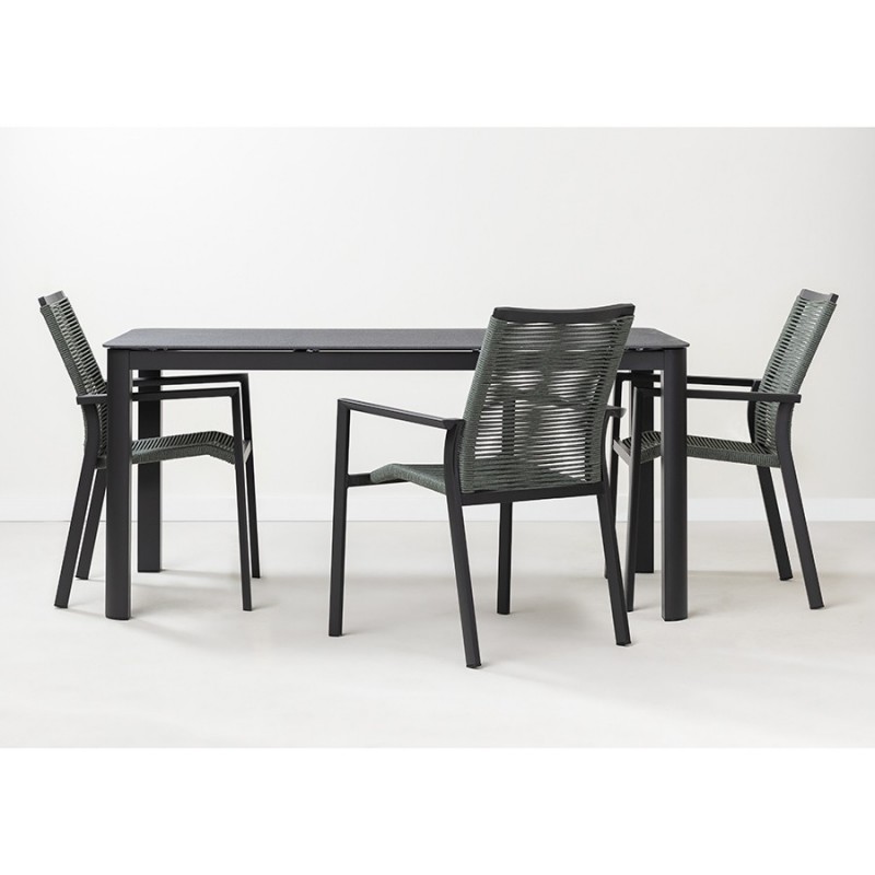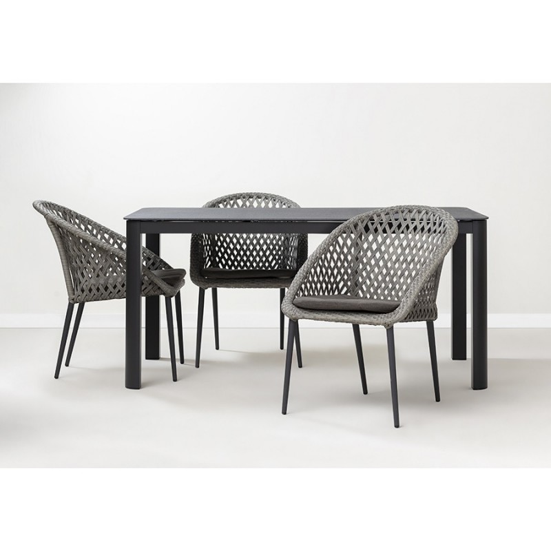 Стол обеденный Leif – прекрасный вариант для обустройства уютного пространства в зоне отдыха и приема пищи. Вы можете использовать этот предмет мебели не только в помещении, но и на открытой террасе или в саду, не беспокоясь о том, что он будет поврежден дождем, солнцем или влагой.Особенности и преимущества:- Покрытие голландской фирмы AkzoNobel, лидера в производстве покрытий для металлических изделий, обеспечивает мебели высокую износостойкость и возможность использования в уличных условиях. - Стол имеет прочный каркас из алюминиевой трубы толщиной 1,2 мм и 1,5 мм. - Круговая полная сварка по всей поверхности соприкосновения шва гарантирует конструкции надежность и долговечность. - Столешница из ударопрочного закаленного стекла толщиной 5 мм легко моется и долго сохраняет привлекательный вид. - Одна сторона столешницы шершавая, покрытая каменной крошкой для большей прочности, а вторая - гладкая. - Стол выдерживает нагрузку до 60 кг. - Гарантия на мебель – 12 месяцев.Материал: алюминий, закаленное кварцевое стекло. Размеры: 160х90х75 см. Расстояние между ножками: 87 см и 157 см. Цвет: темно-серый.Столешницу рекомендуется протирать влажной тканью без длинных волокон – это поможет избежать оседания пыли и частиц текстиля. Запрещается применение абразивов и агрессивной бытовой химии.