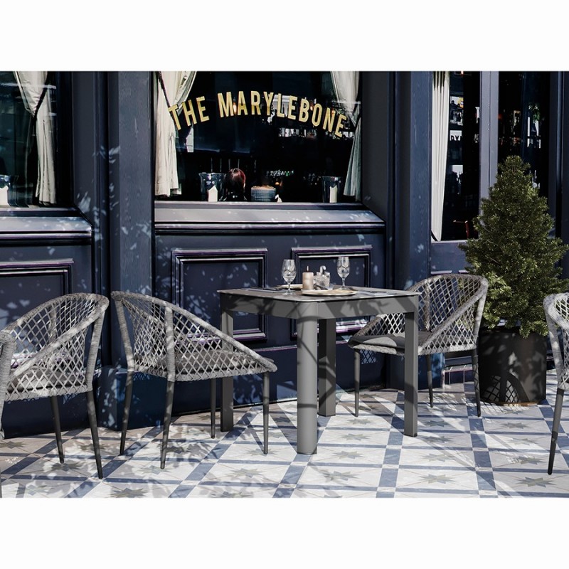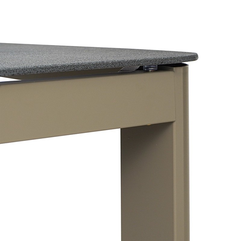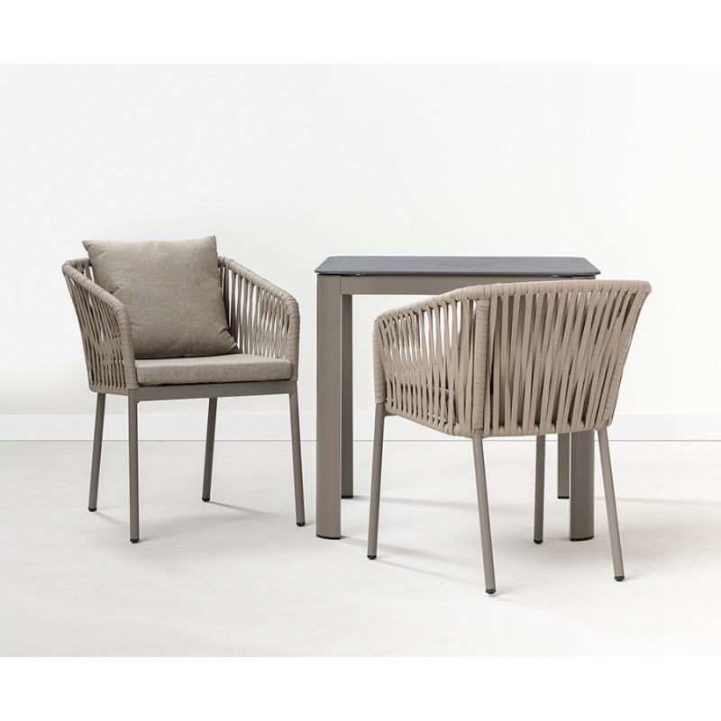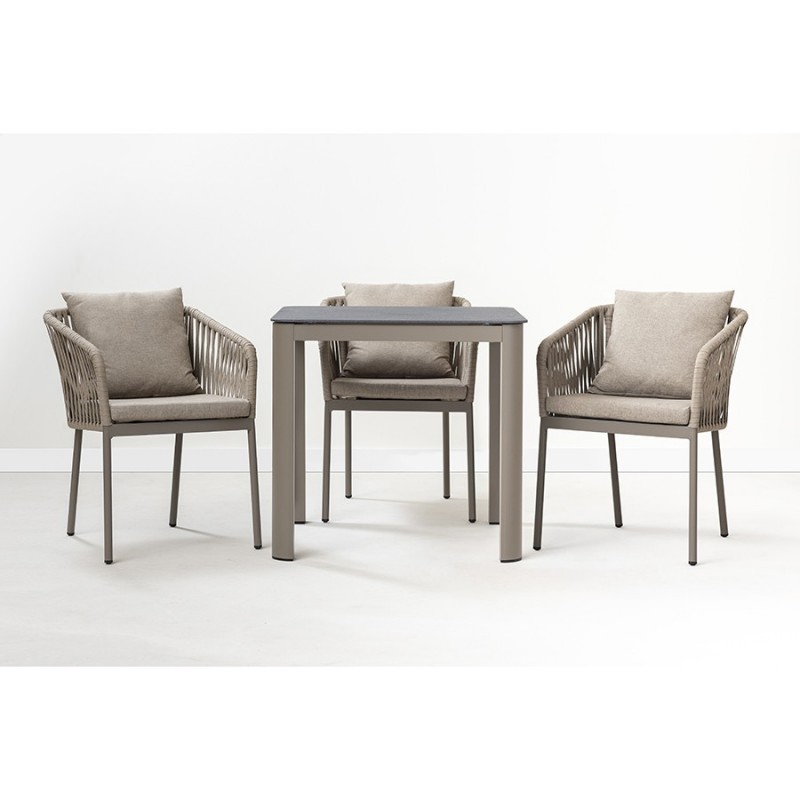 Стол обеденный Leif – прекрасный вариант для обустройства уютного пространства в зоне отдыха и приема пищи. Вы можете использовать этот предмет мебели не только в помещении, но и на открытой террасе или в саду, не беспокоясь о том, что он будет поврежден дождем, солнцем или влагой.Особенности и преимущества:- Покрытие голландской фирмы AkzoNobel, лидера в производстве покрытий для металлических изделий, обеспечивает мебели высокую износостойкость и возможность использования в уличных условиях. - Стол имеет прочный каркас из алюминиевой трубы толщиной 1,2 мм и 1,5 мм. - Круговая полная сварка по всей поверхности соприкосновения шва гарантирует конструкции надежность и долговечность. - Столешница из ударопрочного закаленного стекла толщиной 5 мм легко моется и долго сохраняет привлекательный вид. - Одна сторона столешницы шершавая, покрытая каменной крошкой для большей прочности, а вторая - гладкая. - Стол выдерживает нагрузку до 60 кг. - Гарантия на мебель – 12 месяцев.Материал: алюминий, закаленное кварцевое стекло. Размеры: 80х80х75 см. Расстояние между ножками: 76 см. Цвет: серо-бежевый.Столешницу рекомендуется протирать влажной тканью без длинных волокон – это поможет избежать оседания пыли и частиц текстиля. Запрещается применение абразивов и агрессивной бытовой химии.