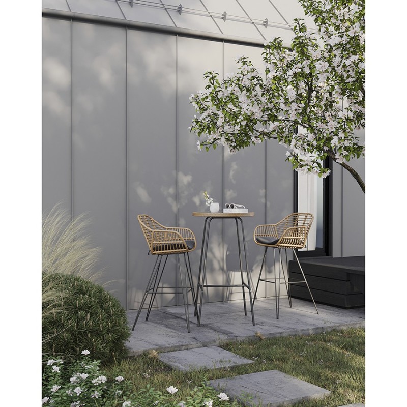 Стул барный Vetle Bent – великолепное сочетание привлекательного дизайна, практичности и долговечности. Мебель с ротанговым плетением делает любое пространство уютным и идеально подходит для обустройства зоны отдыха в помещении и на улице. Модель идеально вписывается в такие стилевые решения, как эко, кантри и прованс.Особенности и преимущества:- Покрытие голландской фирмы AkzoNobel, лидера в производстве покрытий для металлических изделий, обеспечивает мебели высокую износостойкость и возможность использования в уличных условиях. - Стул имеет высокопрочное основание из холоднокатанного цельного стального стержня диаметром 10 мм. - Круговая полная сварка по всей поверхности соприкосновения шва гарантирует конструкции надежность и долговечность. - Искусственный ротанг устойчив к воздействию влаги, пятнам, УФ-излучению и любым погодным условиям, выдерживает температуру от -10 °C до +50 °C. - Сиденье необычной округлой формы с мягкой подушкой обеспечивает максимально удобное расположение. - Чехол на подушку выполнен из гипоаллергенной, водонепроницаемой ткани плотностью 330 г/м2 с защитным покрытием от ультрафиолета. - Внутреннее наполнение подушки – быстросохнущая пена толщиной 4 см. - Предусмотрена специальная перекладина для удобного размещения ног. - Стул выдерживает высокие нагрузки до 135 кг. - Гарантия на мебель – 12 месяцев.Коллекция уличной мебели из искусственного ротанга Vetle поможет создать уютный уголок, где время замирает, позволяя насладиться моментом. Каждый предмет призван дарить комфорт и украшать собой любое пространство, будь то садовый участок, терраса или кафе на свежем воздухе. Наши стулья, банкетки и столики выполнены с вниманием к деталям и любовью к дизайну. Приятный бонус – мягкие подушки с наполнителем из быстросохнущей пены, которые обеспечивают дополнительное удобство во время отдыха под открытым небом. Искусственный ротанг, с его прекрасными эксплуатационными характеристиками, и специальное покрытие голландской фирмы AkzoNobel делают мебель устойчивой к погодным условиям и долговечной.Материал: искусственный ротанг, сталь, полиэстер, пенополиуретан. Высота сиденья: 72 см. Ширина сиденья: 38 см. Глубина сиденья: 35 см. Высота спинки: 35 см. Ширина спинки: 49 см. Высота подлокотников: 20 см. Высота подножки: 32 см. Высота подушки: 4 см. Максимальная нагрузка: 135 кг.Пыль и загрязнения можно удалять с поверхностей при помощи мягкого влажного материала. Чехол от подушки можно стирать в стиральной машине при температуре до +50 °С.