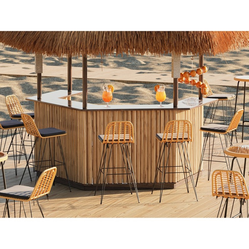 Стул барный Vetle Flat – великолепное сочетание привлекательного дизайна, практичности и долговечности. Мебель с ротанговым плетением делает любое пространство уютным и идеально подходит для обустройства зоны отдыха в доме, на террасе или в саду. Модель идеально вписывается в такие стилевые решения, как эко, кантри и прованс.Особенности и преимущества:- Покрытие голландской фирмы AkzoNobel, лидера в производстве покрытий для металлических изделий, обеспечивает мебели высокую износостойкость и возможность использования в уличных условиях. - Стул имеет высокопрочное основание из холоднокатанного цельного стального стержня диаметром 10 мм. - Круговая полная сварка по всей поверхности соприкосновения шва гарантирует конструкции надежность и долговечность. - Искусственный ротанг устойчив к воздействию влаги, пятнам, УФ-излучению и любым погодным условиям, выдерживает температуру от -10 °C до +50 °C. - Чехол на подушку выполнен из гипоаллергенной, водонепроницаемой ткани плотностью 330 г/м2 с защитным покрытием от ультрафиолета. - Внутреннее наполнение подушки – быстросохнущая пена толщиной 4 см. - Предусмотрена специальная перекладина для удобного размещения ног. - Стул выдерживает высокие нагрузки до 135 кг. - Гарантия на мебель – 12 месяцев.Коллекция уличной мебели из искусственного ротанга Vetle поможет создать уютный уголок, где время замирает, позволяя насладиться моментом. Каждый предмет призван дарить комфорт и украшать собой любое пространство, будь то садовый участок, терраса или кафе на свежем воздухе. Наши стулья, банкетки и столики выполнены с вниманием к деталям и любовью к дизайну. Приятный бонус – мягкие подушки с наполнителем из быстросохнущей пены, которые обеспечивают дополнительное удобство во время отдыха под открытым небом. Искусственный ротанг, с его прекрасными эксплуатационными характеристиками, и специальное покрытие голландской фирмы AkzoNobel делают мебель устойчивой к погодным условиям и долговечной.Материал: искусственный ротанг, сталь, полиэстер, пенополиуретан. Размеры: 42х54х100 см. Высота сиденья: 74 см. Ширина сиденья: 42 см. Высота подушки: 4 см. Максимальная нагрузка: 135 кг.Пыль и загрязнения можно удалять с поверхностей при помощи мягкого влажного материала. Чехол от подушки можно стирать в стиральной машине при температуре до +50 °С.