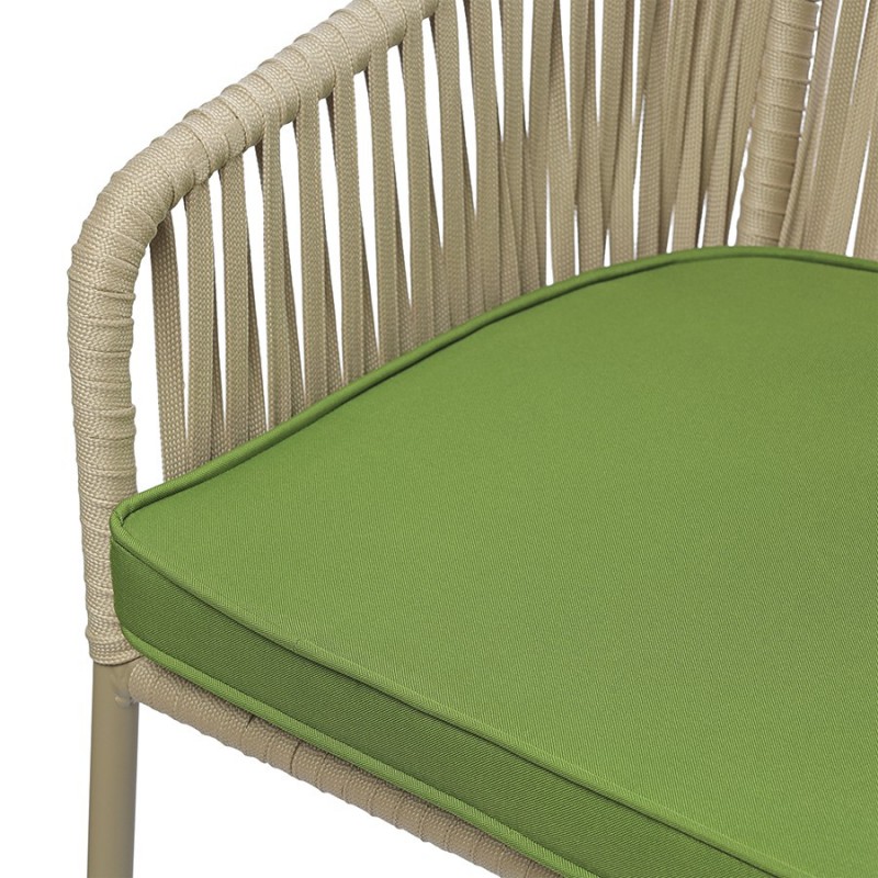 Стул Reed от дизайнерского бренда Bergenson Bjorn – не только стильное решение для любого уличного пространства, но и инвестиция в комфортный отдых. Изготовленный из высококачественных и устойчивых к износу материалов, он способен выдерживать воздействие влаги, солнечных лучей и перепады температур, сохраняя привлекательный внешний вид.Особенности и преимущества:- Покрытие голландской фирмы AkzoNobel, лидера в производстве покрытий для металлических изделий, обеспечивает мебели высокую износостойкость и возможность использования в уличных условиях. - Стул имеет прочное и надежное основание из алюминиевой трубы диаметром 22 мм и толщиной 1,8 мм. - Круговая полная сварка по всей поверхности соприкосновения шва гарантирует конструкции надежность и долговечность. - Спинку украшает декоративное плетение в виде лент из плотного и износостойкого полиэстера шириной 15 мм. - Чехол на подушку выполнен из гипоаллергенной, водонепроницаемой ткани плотностью 330 г/м2 с защитным покрытием от ультрафиолета. - Внутреннее наполнение подушки – быстросохнущая пена толщиной 5 см. - Стул выдерживает высокие нагрузки до 135 кг.Материал: алюминий, полиэстер, пенополиуретан. Размеры: 51х50х75 см. Высота сиденья: 52 см. Ширина сиденья: 47 см. Глубина сиденья: 47 см. Высота спинки: 36 см. Ширина спинки: 51 см. Максимальная нагрузка: 135 кг. Цвет: бежевый/зеленый.Пыль и загрязнения можно удалять с поверхностей при помощи мягкого влажного материала. Чехол от подушки можно стирать в стиральной машине при температуре до +50 °С.