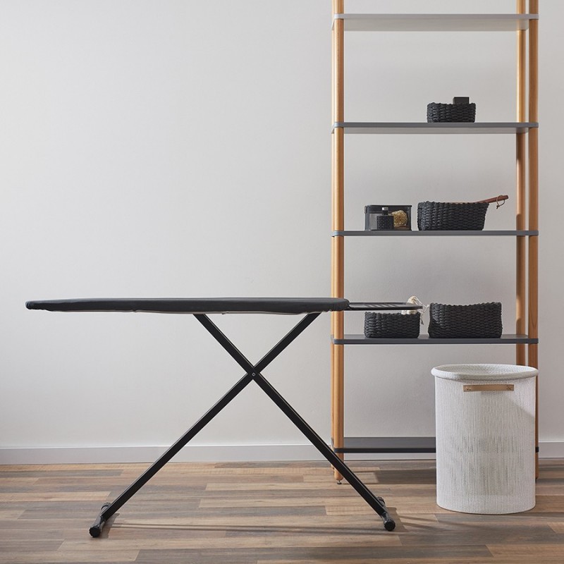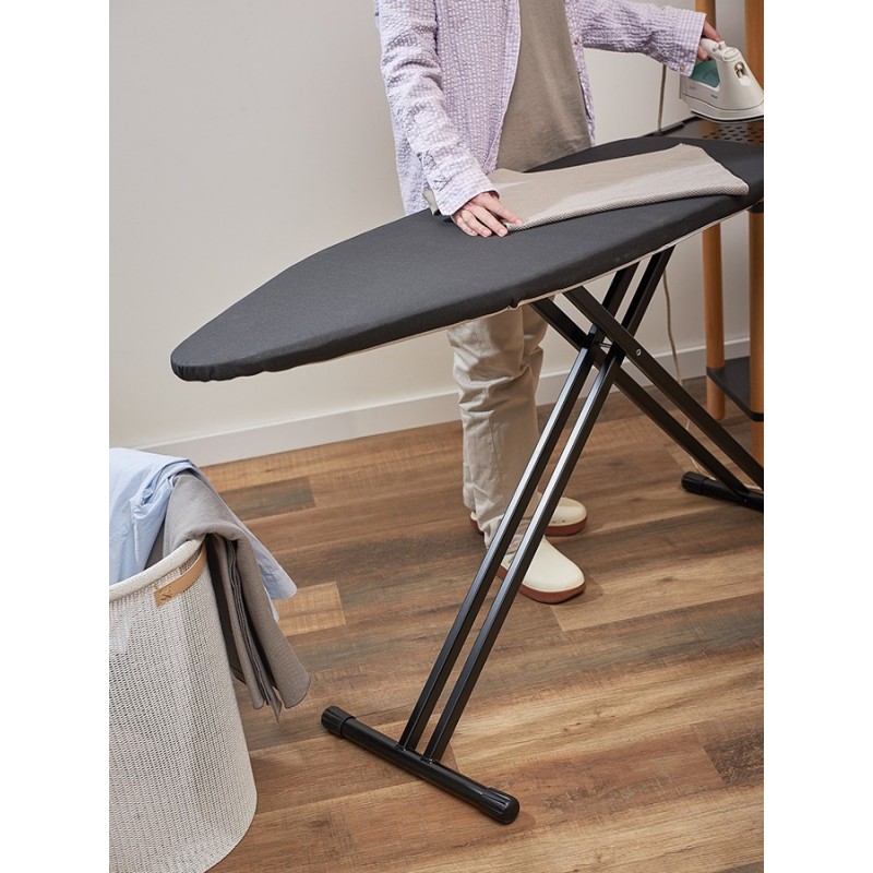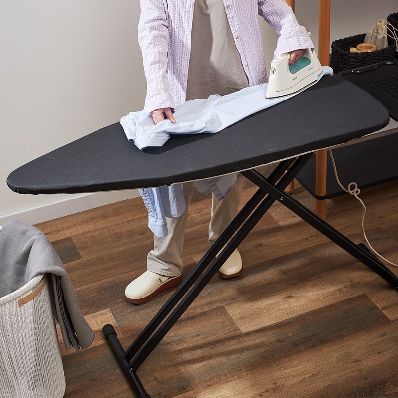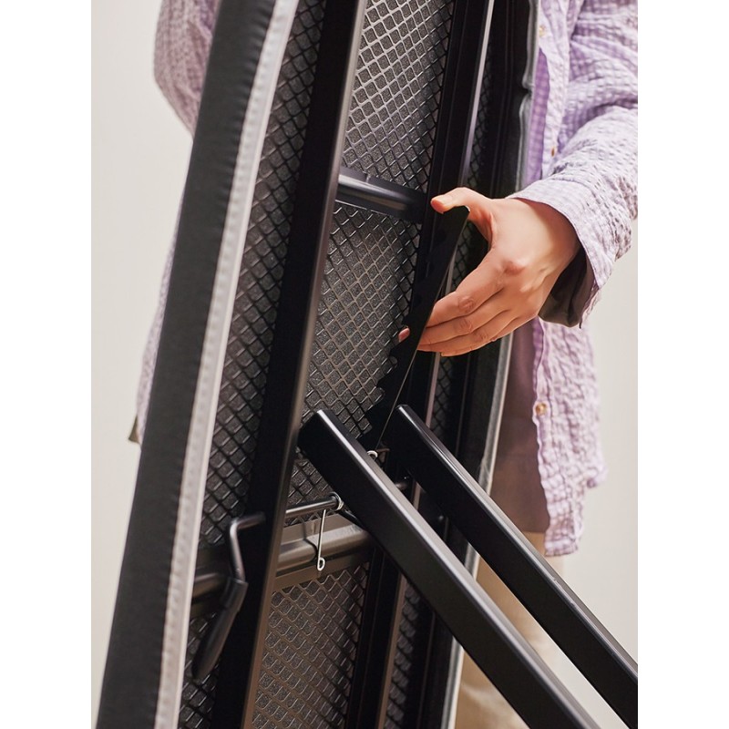 Напольная гладильная доска Smart Iron – идеальное решение для тех, кто ценит практичность, комфорт и удобство использования. Модель имеет широкую рабочую поверхность, прочную, устойчивую конструкцию и легко регулируется по высоте. Подходит для работы с утюгом и отпаривателем.Особенности и преимущества:- Семь уровней регулировки высоты позволяют выбрать наиболее комфортное положение для глажки. - Широкая рабочая поверхность дает возможность удобно гладить объемные вещи, такие как постельное белье или шторы. - Чехол имеет пять слоев, каждый из которых работает на ускорение разглаживания вещи – до 35% эффективнее. - Верхний слой чехла изготовлен из 100% хлопка с сатиновым плетением и добавлением металлизированной нити плотностью 180 г/м2 – самая высокая из предлагаемых на рынке. - Два слоя пенополиуретана толщиной 2 мм и 3 мм создают оптимальный баланс мягкости и упругости. - Слой фольги усиливает теплоотдачу для более эффективного разглаживания, а прослойка из фетра обладает высокой впитывающей способностью. - Усиленные металлические ножки диаметром 35 мм оснащены защитными колпачками против царапин и скольжения. - Большая металлическая термостойка для утюга и парогенератора, выдерживающая нагрузку до 10 кг, обеспечивает удобное и безопасное использование. - Доска быстро раскладывается/складывается и надежно фиксируется в нужном положении с помощью специального стоппера.Материалы: сталь, хлопок, пенополиуретан, фетр, пластик. Размер в разложенном состоянии: 151х45х70/93 см. Размер в сложенном состоянии: 160х45х8 см. Минимальная высота 70 см. Максимальная высота 93 см. Размер гладильной поверхности 123х44 см. Размер подставки для утюга: 27,5х45 см. Цвет чехла: графит.Рекомендована сухая чистка чехла.