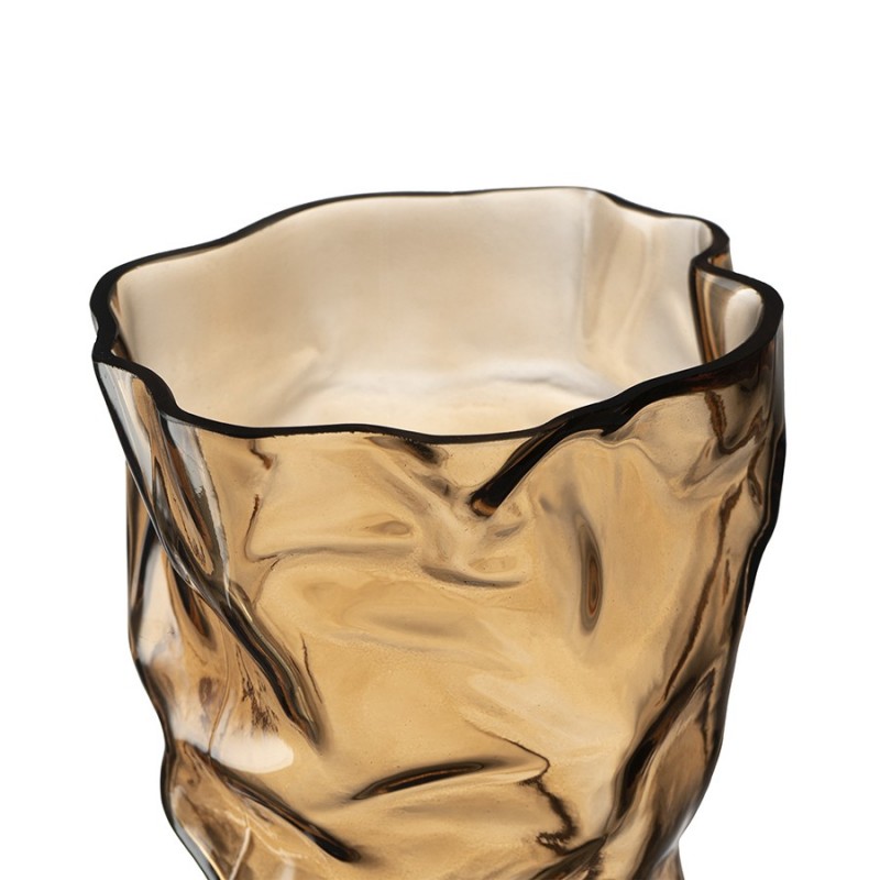 Ваза Crumpl от дизайнерского бренда Bergenson Bjorn – прекрасный способ придать интерьеру индивидуальность. Ее интересная “мятая” фактура и трендовый оттенок привлекают внимание и великолепно вписываются в различные современные решения.Особенности и преимущества:- Ваза из содового стекла отличается привлекательным внешним видом, устойчивостью к износу, легко очищается от загрязнений. - Материал является химически инертным, безопасным для здоровья и окружающей среды. - За счет неровной поверхности создается дополнительный объем и красивый визуальный эффект. - Благодаря интересному дизайну аксессуар можно использовать в качестве акцентного элемента в интерьерах с различным оформлением: минимализм, сканди, поп-арт, хай-тек, лофт и других.Материал: содовое стекло. Высота: 32 см. Объем: 2,6 л. Цвет: коричневый.Вазу можно очищать от загрязнений в теплой мыльной воде с помощью мягкой губки или щетки. Вернуть кристальную чистоту и блеск стеклянному сосуду поможет вода с лимоном, солевой раствор или чистящее средство на основе уксусной кислоты.