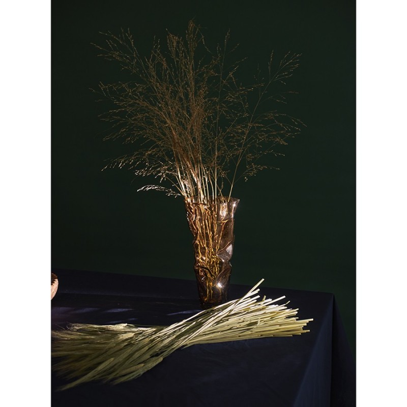 Ваза Crumpl от дизайнерского бренда Bergenson Bjorn – прекрасный способ придать интерьеру индивидуальность. Ее интересная “мятая” фактура и трендовый оттенок привлекают внимание и великолепно вписываются в различные современные решения.Особенности и преимущества:- Ваза из содового стекла отличается привлекательным внешним видом, устойчивостью к износу, легко очищается от загрязнений. - Материал является химически инертным, безопасным для здоровья и окружающей среды. - За счет неровной поверхности создается дополнительный объем и красивый визуальный эффект. - Благодаря интересному дизайну аксессуар можно использовать в качестве акцентного элемента в интерьерах с различным оформлением: минимализм, сканди, поп-арт, хай-тек, лофт и других.Материал: содовое стекло. Высота: 32 см. Объем: 2,6 л. Цвет: коричневый.Вазу можно очищать от загрязнений в теплой мыльной воде с помощью мягкой губки или щетки. Вернуть кристальную чистоту и блеск стеклянному сосуду поможет вода с лимоном, солевой раствор или чистящее средство на основе уксусной кислоты.