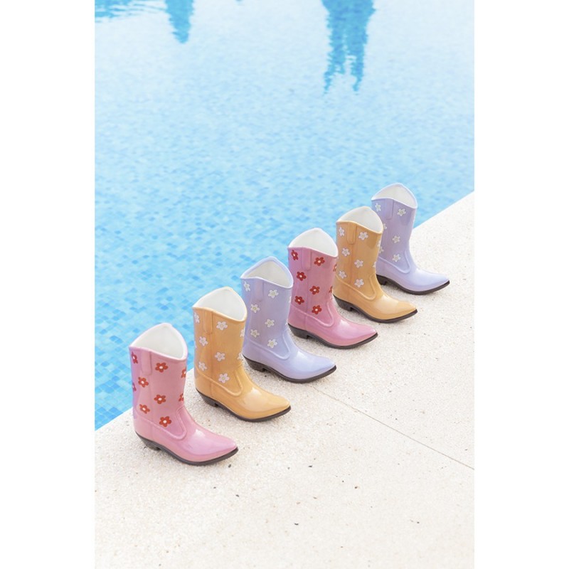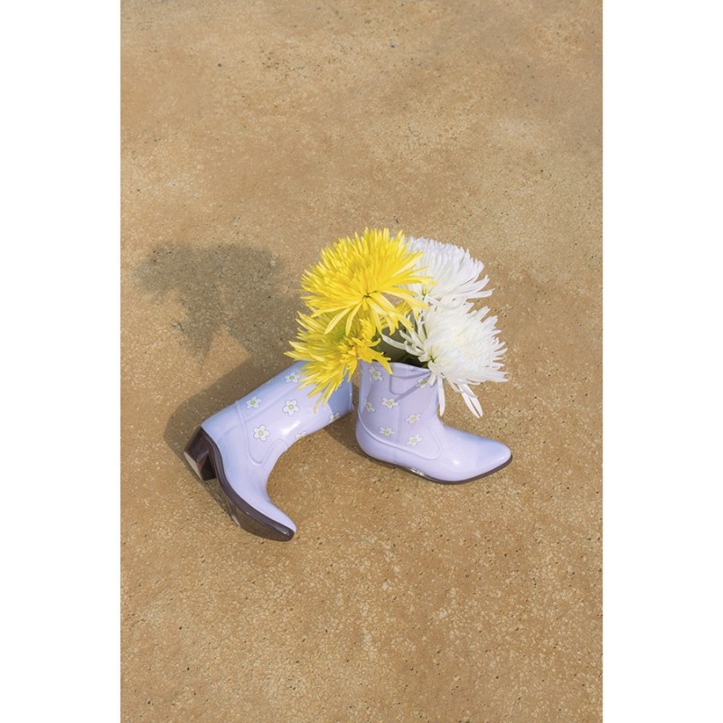 Ваза для цветов Rodeo в форме ковбойского сапога поможет освежить пространство и окунуться в захватывающую атмосферу Дикого Запада.Особенности и преимущества:- Изготовлена из устойчивой к износу и экологичной керамики. - Имеет необычный дизайн, который привлекает внимание. - Подходит для сухоцветов и живых цветов.Материал: керамика. Размер: 19,5х7,5х22,5 см. Цвет: лиловый.Рекомендуется мыть вручную при помощи мягкой губки. Запрещается использование абразивных материалов и агрессивной бытовой химии.