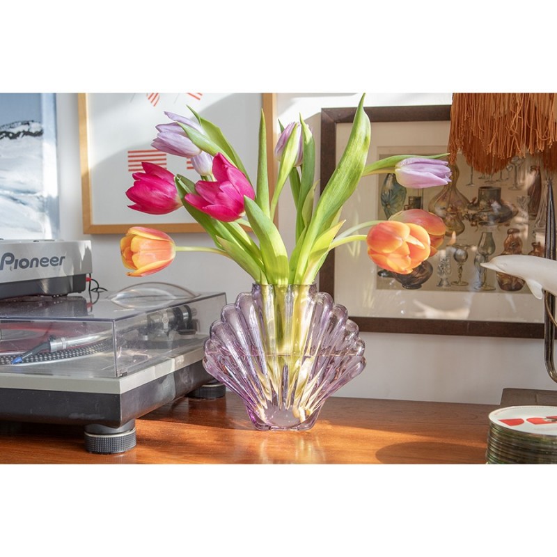 Ваза Seashell поможет в создании легкой, непринужденной атмосферы и расстановке акцентов в интерьере. Она эффектно подчеркнет красоту свежих букетов и сухоцветов, будет отлично смотреться в композициях морской тематики.Особенности и преимущества:- Стекло легко очищается от загрязнений, что позволяет поддерживать вазу в идеальном состоянии на протяжении долгих лет. - Необычный дизайн в виде морской раковины привлекает внимание и может служить ярким акцентом интерьера. - Ваза подходит для живых цветов и композиций из сухоцветов.Материал: стекло. Размер: 18,5x7,7x16,3 см. Цвет: лиловый.Рекомендуется мыть вручную при помощи мягкой губки. Запрещается использование абразивных материалов и агрессивной бытовой химии.