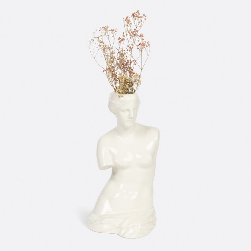 Стильная ваза Venus, выполненная в форме богини Венеры, – вдохновленный античным искусством аксессуар и подарок, способный ярко выразить любовь к близкому человеку. Скульптура с плавными изгибами подчеркнет красоту цветов и станет органичной частью как классического, так и современного интерьера. Экологически чистая керамика безвредна для окружающей среды.Материал: керамика. Размеры: 16x16x31 см.Рекомендуется протирать влажной мягкой тканью или мыть в теплой воде с жидким средством.