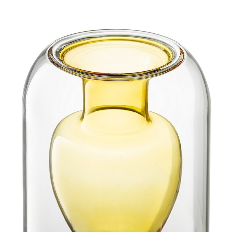 Ваза Muse добавит в интерьер нотку античной элегантности. Каждый взгляд на нее – это путешествие в великолепную эпоху, где красота и совершенство форм были высшими ценностями. Используйте ее для размещения живых букетов, композиций из сухоцветов и в качестве акцентного элемента, чтобы придать пространству характер и индивидуальность.Особенности и преимущества:- Выполнена из боросиликатного стекла, известного своей прочностью и долговечностью. - Имеет двойные стенки, благодаря чему создается красивый визуальный эффект вазы за стеклом. - За счет устойчивого основания надежно стоит на любой поверхности.Коллекция Muse вдохновлена утонченной красотой греческих сосудов, бережно хранящихся за стеклом музейных витрин. Переосмысливая древние традиции, студия Bergenson Bjorn создала функциональный декор, объединяющий в себе историю и современность. Каждая ваза – дань уважения искусным мастерам и напоминание о непреходящих ценностях, которые пережили века и продолжают восхищать своим совершенством.Материал: боросиликатное стекло. Диаметр: 12 см. Высота: 16,2 см. Цвет: янтарный.Вазу рекомендуется мыть вручную.