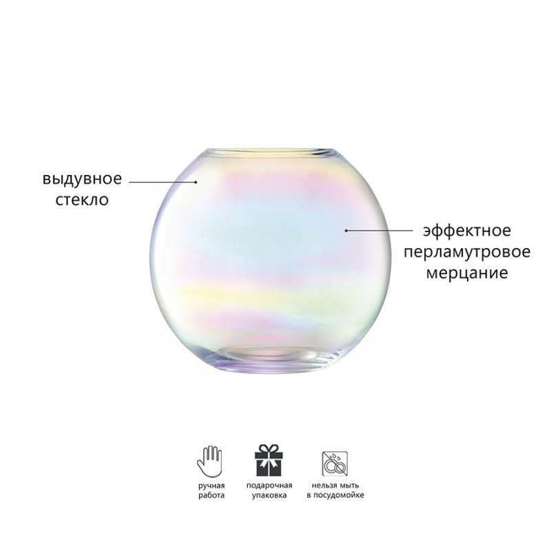 При создании коллекции Pearl дизайнеры вдохновлялись природной красотой натурального жемчуга: перламутровое мерцание, совершенство форм, тонкая работа и деликатная игра света. Ваза ручной работы станет эффектным завершающим штрихом в современном интерьере. Она упакована в красивую коробку, благодаря чему станет великолепным подарком на любой праздник.Важно! Поскольку изделие изготавливается вручную, его размеры могут незначительно отличаться и допускается наличие пузырьков в толще стекла: круглые < 3 мм, овальные < 5 мм и их небольшие скопления в виде пены. Также возможно наличие прожилок (видимых нитей) на стекле менее 50% длины окружности любого предмета. Все это не брак, а допустимые индивидуальные особенности товаров, произведенных ручным способом.Материалы: выдувное стекло. Высота: 24 см. Ширина: 26,5 см.Рекомендуется мыть вручную в теплой мыльной воде и вытирать насухо мягкой тканью.