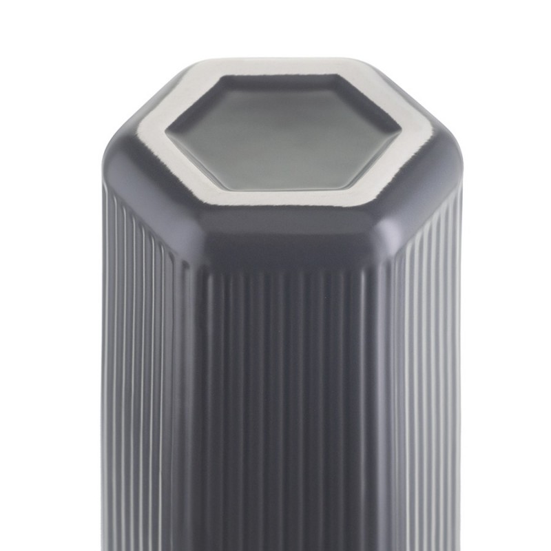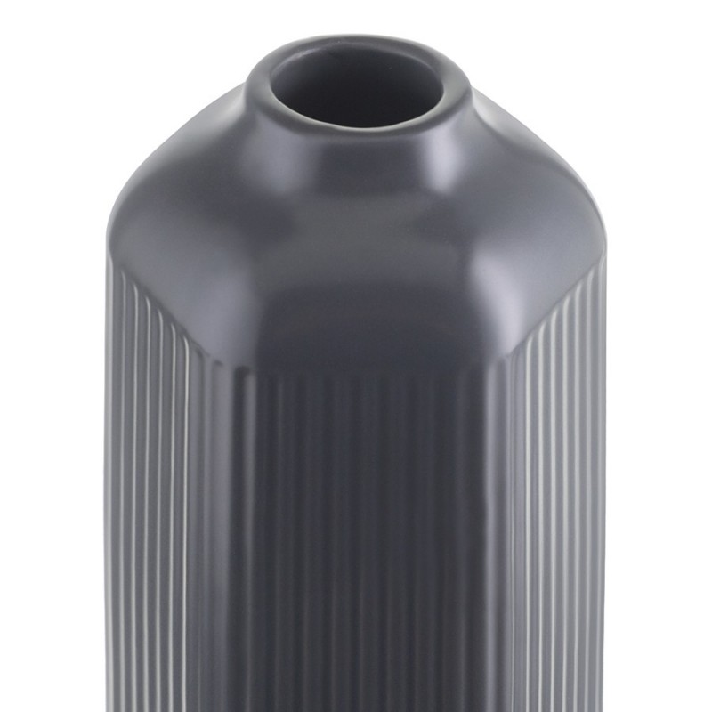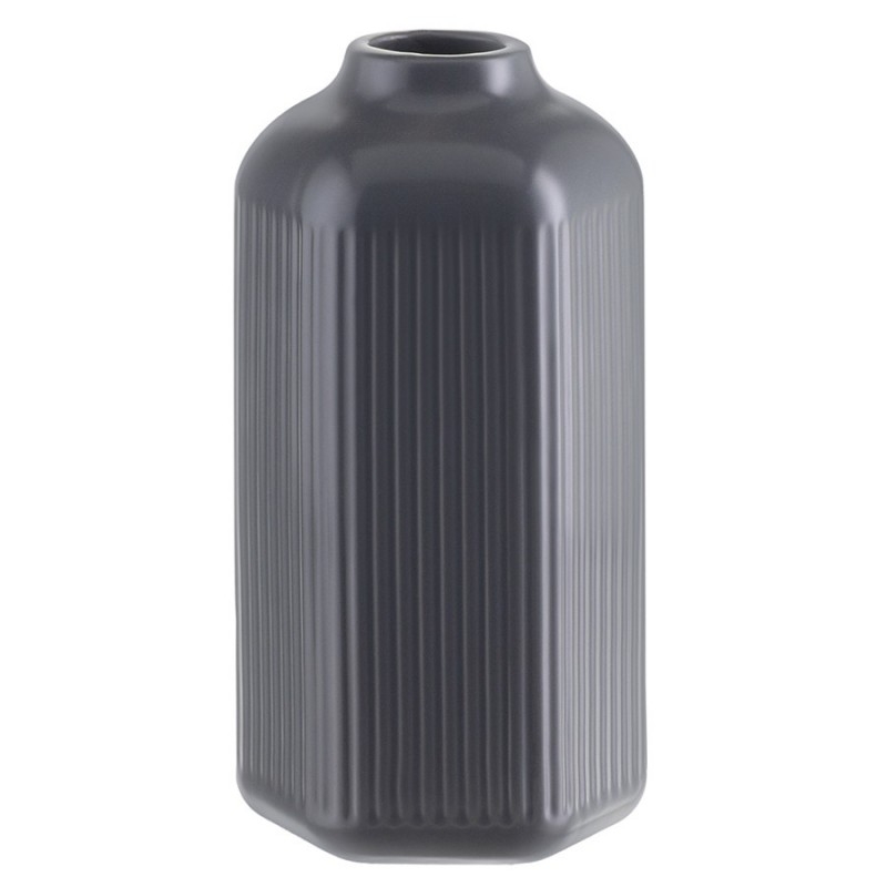 Ваза серого цвета из коллекции Edge подойдет как для букетов из живых цветов, так и для сухоцветов. Простая форма вазы с фактурными гранями и зауженной горловиной будет сочетаться с другими предметами из этой же коллекции, позволяя создавать интересные интерьерные композиции. Изделие выполнено из доломита, устойчивого к сколам, легкого и экологически чистого материала, снаружи и внутри покрыто матовой глазурью. Высота: 22 см. Объем: 1,1 л.
