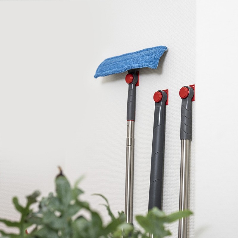 Настенная вешалка предназначена для удобного хранения инвентаря для уборки марки Nordic Stream. Она выполнена из прочного пластика высокого качества. Изделие легко крепится к стене. На ручках уборочного инвентаря расположены специальные петли. По бокам вешалка дополнена защелкивающимися вставками, которые позволяют швабрам, метелками, скребкам и щеткам надежно фиксироваться в одном положении при хранении.