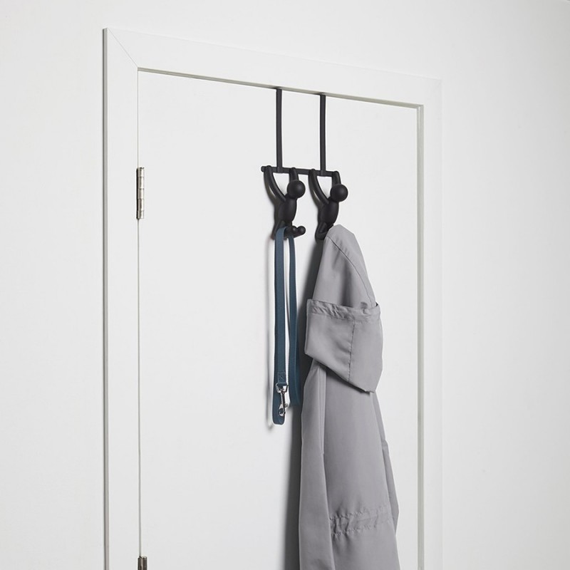 Надверная вешалка Buddy – оригинальное приспособление для хранения одежды. Авторами дизайна выступили Alan Wisniewski и Wesley Chau.Основание выполнено из сверхпрочного АБС-пластика, устойчивого к износу и воздействию влаги. Конструкция оснащена надежной панелью для удобного крепления к дверям без вкручивания дюбелей или использования клея. Крючки в виде забавных человечков способны выдерживать нагрузку до 2,3 кг.Материалы: АБС-пластик, сталь, этиленвинилацетат. Размеры: 21,6х11х30 см.Пыль и загрязнения с поверхностей можно удалять при помощи мягкого влажного материала. После очищения вешалку рекомендуется протереть сухой салфеткой.