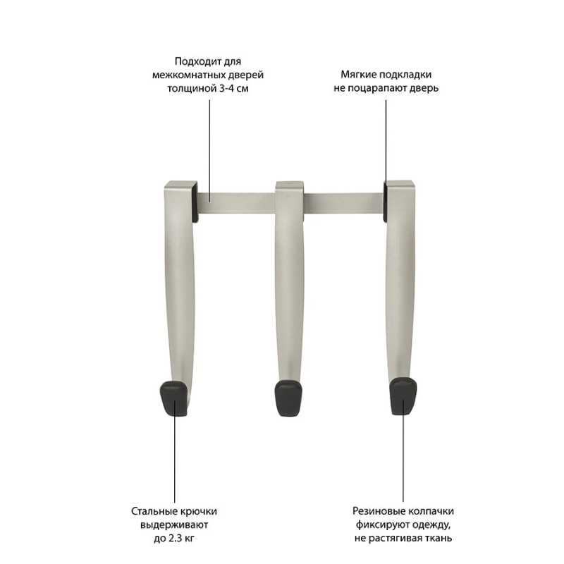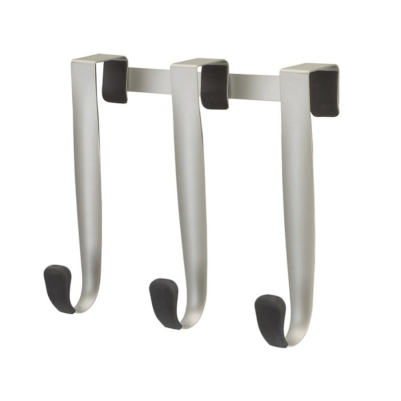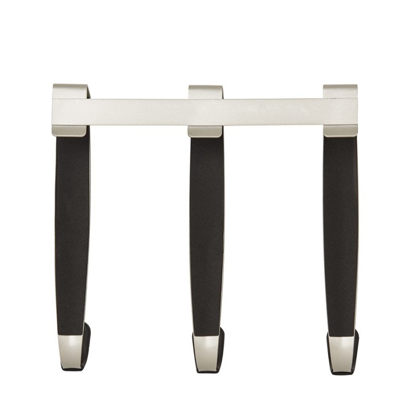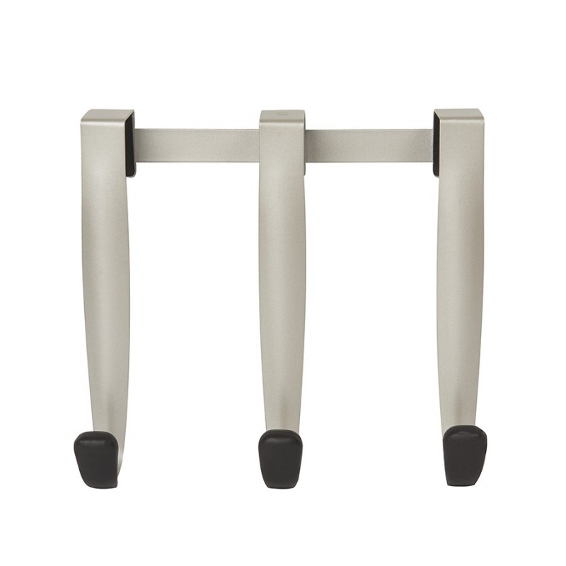 Надверная вешалка Schnook идеально дополнит интерьер кухни, прихожей или ванной комнаты. Автором идеи создания многофункциональной вешалки для дома стал талантливый дизайнер Thea Yuzyk.Аксессуар выполнен из штампованного металла высокого качества. Благодаря никелевому покрытию изделие не поддается коррозии и сохраняет привлекательный вид на протяжении всего срока эксплуатации. Изделие легко крепится к дверям без использования клея и дюбелей. Специальная накладка препятствует скольжению вешалки по поверхности. Аксессуар снабжен тремя крючками с резиновыми наконечниками, защищающими одежду от повреждений.Материалы: сталь, полипропилен.