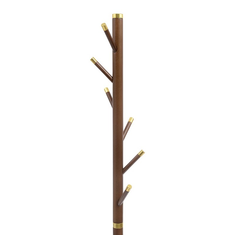 Вешалка напольная Bakken – не просто функциональный элемент прихожей, но и стильный акцент интерьера. Отсылка к природным мотивам позволяет вписать модель в различные стилевые решения, включая эко, сканди, фьюжн, эклектика и другие. Конструкция имеет прочное железное основание с хромированным покрытием, устойчивым к коррозии и внешним воздействиям. Благодаря компактности вешалка не занимает много места в помещении, подходит для малогабаритных пространств. Каждый крючок выдерживает нагрузку до 5 кг, а вешалка в целом – не более 20 кг.Материалы: железо с хромированным покрытием, дерево. Высота: 180 см. Цвет: золотистый хром/светлый орех.Пыль и загрязнения с поверхностей можно удалять при помощи мягкой влажной салфетки. Запрещается использование абразивных материалов и агрессивной бытовой химии.