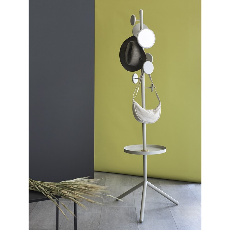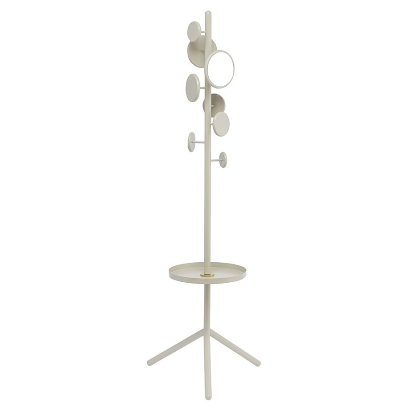 Вешалка напольная с полкой Lingon – великолепное сочетание стиля и функциональности. Она идеально подходит для размещения головных уборов, сумок, зонтов и подручных мелочей. Вы можете использовать ее для обустройства квартиры, дома или офиса.Особенности и преимущества:- Вешалка из железа имеет прочную, долговечную, устойчивую к износу и деформации конструкцию. - Модель оснащена полкой и крючками необычной круглой формы, которые позволяют надежно зафиксировать вещи, не повредив их. - Благодаря компактным размерам она идеально подходит для прихожей с небольшой площадью. - Несколько цветовых решений дают возможность выбрать наиболее подходящий вариант для любого пространства.Материал: железо, стекло. Размеры: 56,5х56,5х181 см. Вес: 6,4 кг. Длина крючков: 7,2/7,5 см. Высота полки: 52,3 см. Максимальна нагрузка на один крючок: до 7 кг. Максимальная нагрузка на вешалку: до 20 кг. Цвет: слоновая кость.