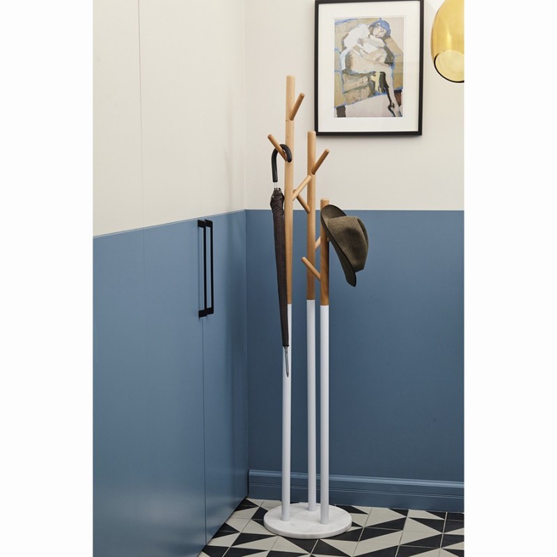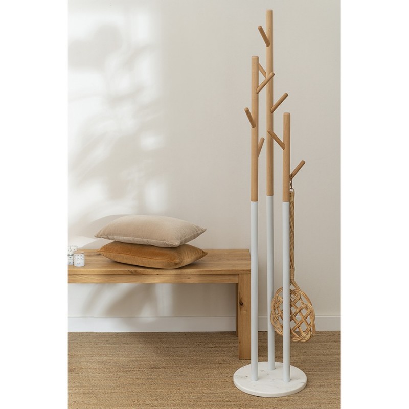 Напольная вешалка Solheim станет стильным акцентом в интерьере дома или офиса. Элементы из металла, дерева и натурального мрамора великолепно дополняют друг друга и органично сочетаются с декором из любых материалов. Расположенные на разной высоте крючки позволяют удобно разместить верхнюю одежду и аксессуары. Модель отлично подходит для оформления прихожей с современным, минималистичным и эклектичным дизайном. Каждый крючок выдерживает нагрузку до 5 кг, а вешалка в целом – не более 20 кг.Материалы: железо, дерево, натуральный мрамор. Высота: 171 см. Цвет: белый мрамор/натуральное дерево.Пыль и загрязнения с поверхностей можно удалять при помощи мягкой влажной салфетки. Запрещается использование абразивных материалов и агрессивной бытовой химии.