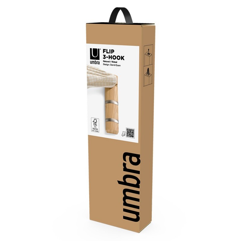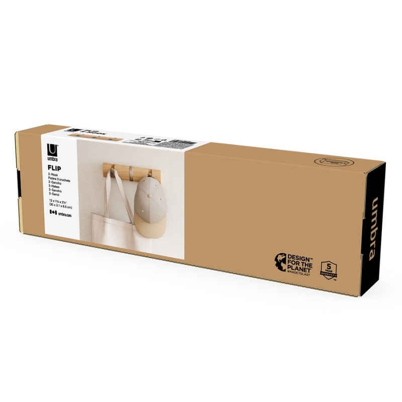 Вешалка настенная Flip станет стильным дополнением прихожей с современным и классическим дизайном. Она идеально подойдет для хранения верхней одежды, сумок, зонтов и прочих аксессуаров.Вешалка имеет основание из древесины тополя и оснащена 3-мя откидными крючками из прочного ABS-пластика, каждый из которых выдерживает нагрузку до 2,3 кг. Конструкция спроектирована таким образом, что крючки можно легко убрать в специальные пазы, если они не используются, – это позволяет экономить полезное пространство. Благодаря скрытой крепежной системе вешалка легко монтируется на любую стену.Материалы: ясень, ABS-пластик. Размеры: 30х6х3 см. Цвет: натуральное дерево.Пыль и загрязнения с поверхностей можно удалять при помощи мягкого влажного материала. После очищения вешалку рекомендуется протереть сухой салфеткой. Запрещается использование абразивов и агрессивной бытовой химии.