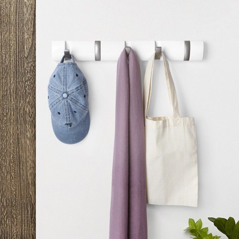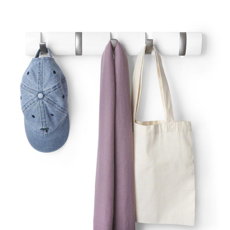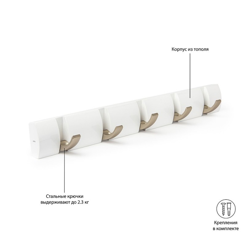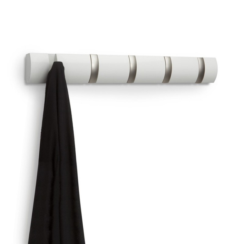 Стильная и прочная вешалка Flip идеально впишется даже в небольшую прихожую. Автор дизайна – David Quan.Вешалка имеет 3 откидных крючка из никеля: когда они не используются, их можно легко сложить. Каждый крючок выдерживает нагрузку до 2,3 кг. Вешалка поставляется с подробной инструкцией по установке и необходимым монтажным оборудованием.Материалы: тополь, АБС-пластик. Размеры: 50,8х3,2х6,4 см.Пыль и загрязнения с поверхностей можно удалять при помощи мягкого влажного материала. После очищения вешалку рекомендуется протереть сухой салфеткой. Запрещается использование абразивов и агрессивной бытовой химии.