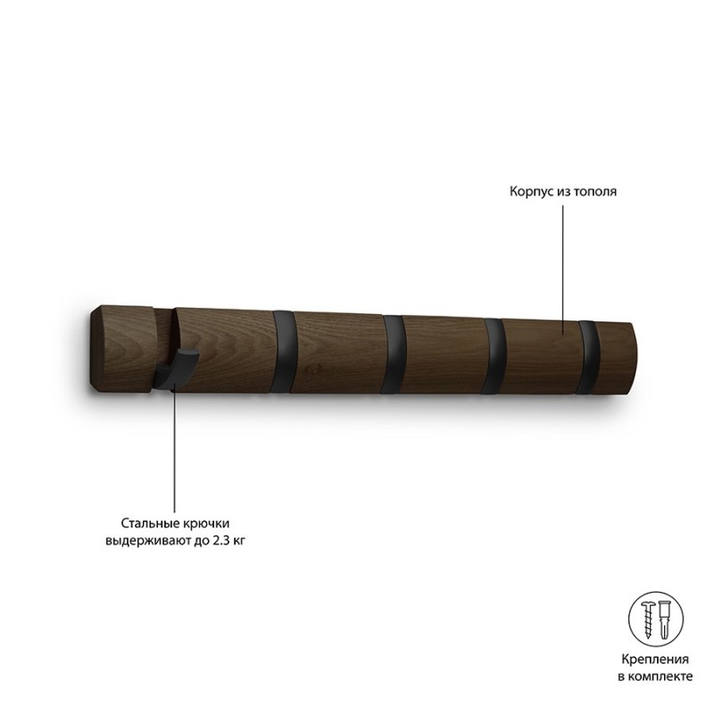 Вешалка настенная flip, 50,8 см, черная/орех, 5 крючков (артикул 745)