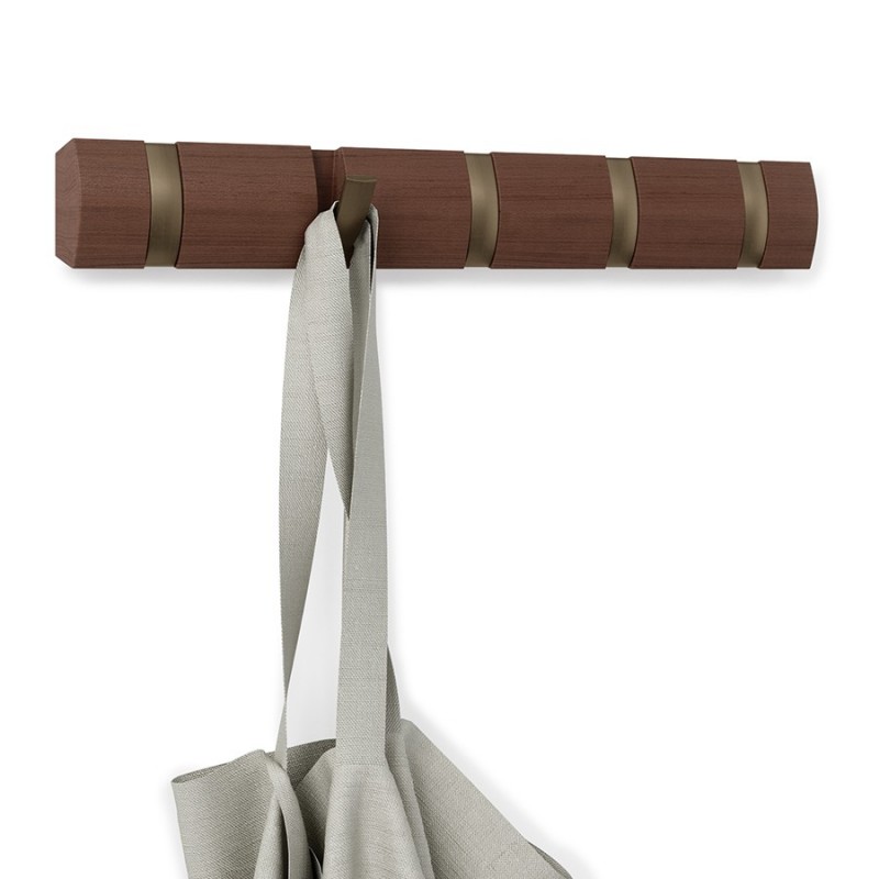 Стильная и прочная вешалка идеально впишется даже в небольшую прихожую.Вешалка имеет 5 откидных крючков из никеля: когда они не используются, их можно легко сложить. Каждый крючок выдерживает вес до 2,3 кг. Поставляется с подробной инструкцией по установке и необходимым монтажным оборудованием.Материалы: тополь, ABS-пластик.
