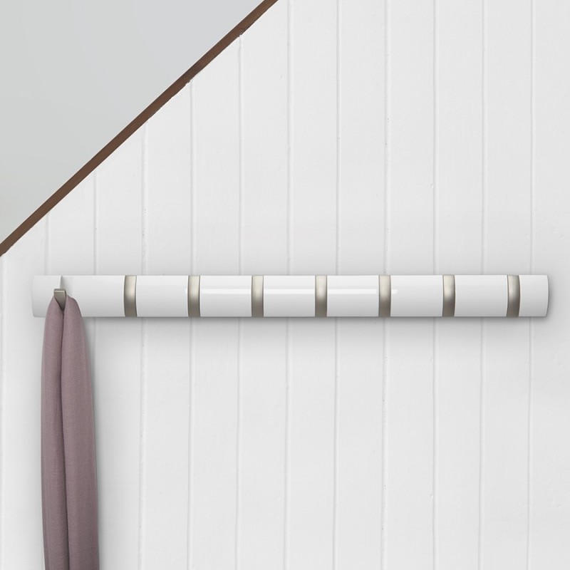 Стильная и прочная вешалка идеально впишется даже в небольшую прихожую.Вешалка имеет 8 откидных крючков из никеля: когда они не используются, их можно легко сложить. Каждый крючок выдерживает вес до 2,3 кг. Поставляется с подробной инструкцией по установке и необходимым монтажным оборудованием.