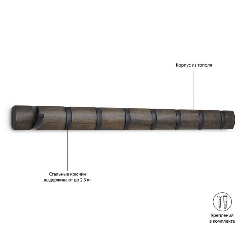 Вешалка настенная flip, 84,5 см, черная/орех, 8 крючков (артикул 1880)