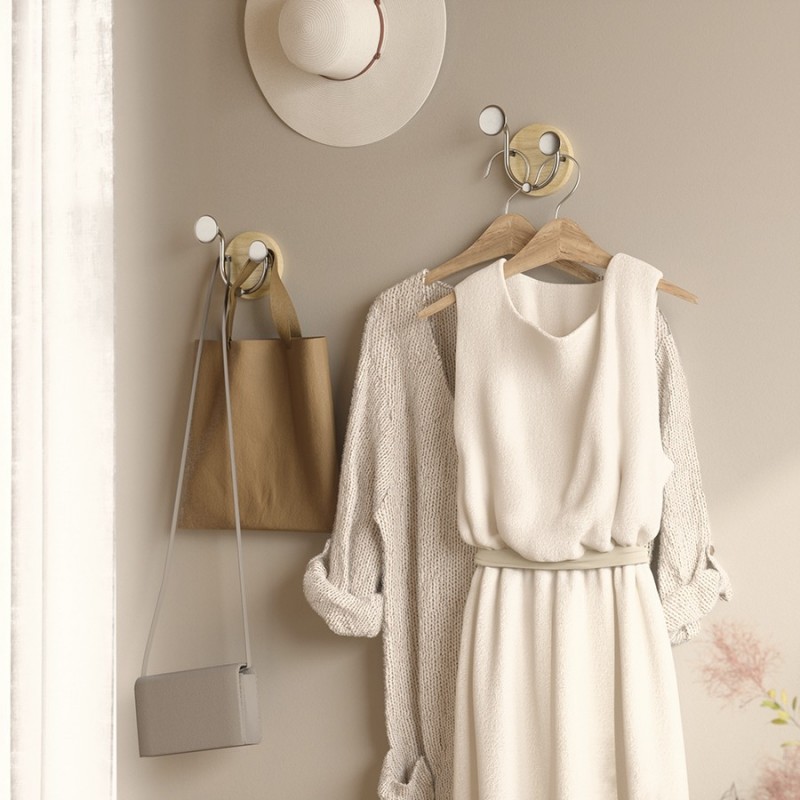 Вешалка настенная melody, 2 крючка, натуральное дерево/никель (артикул 1940)