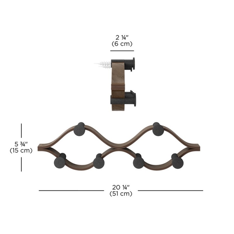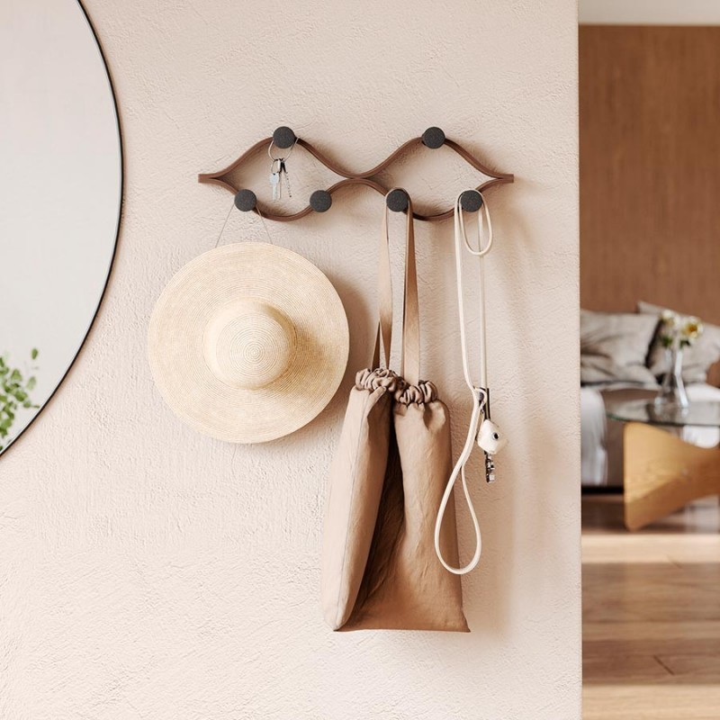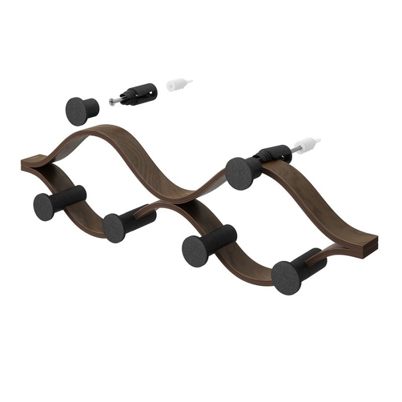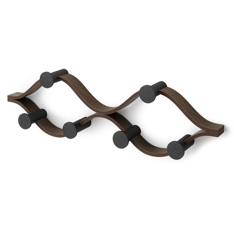 Вешалка настенная Montage идеально подойдет для компактного хранения вещей в любой из комнат и станет стильным акцентом интерьера. Сочетание дерева и элементов из металла придает аксессуару современный, но в то же время естественный вид. Вешалка оснащена шестью крючками, на которых можно удобно размещать предметы одежды, головные уборы, шарфы, сумки и другие аксессуары. Изготовленный из возобновляемых источников древесины, аксессуар одновременно стильный и экологически чистый.Материалы: сталь, береза, ясень, полипропилен. Размеры: 51х6х15 см. Максимальная нагрузка: 13,6 кг. Цвет: черный/орех.Пыль и загрязнения с поверхностей можно удалять при помощи мягкого влажного материала. Запрещается использование абразивов и агрессивной бытовой химии.