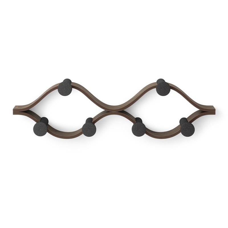 Вешалка настенная Montage идеально подойдет для компактного хранения вещей в любой из комнат и станет стильным акцентом интерьера. Сочетание дерева и элементов из металла придает аксессуару современный, но в то же время естественный вид. Вешалка оснащена шестью крючками, на которых можно удобно размещать предметы одежды, головные уборы, шарфы, сумки и другие аксессуары. Изготовленный из возобновляемых источников древесины, аксессуар одновременно стильный и экологически чистый.Материалы: сталь, береза, ясень, полипропилен. Размеры: 51х6х15 см. Максимальная нагрузка: 13,6 кг. Цвет: черный/орех.Пыль и загрязнения с поверхностей можно удалять при помощи мягкого влажного материала. Запрещается использование абразивов и агрессивной бытовой химии.