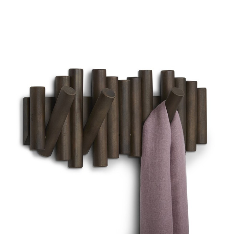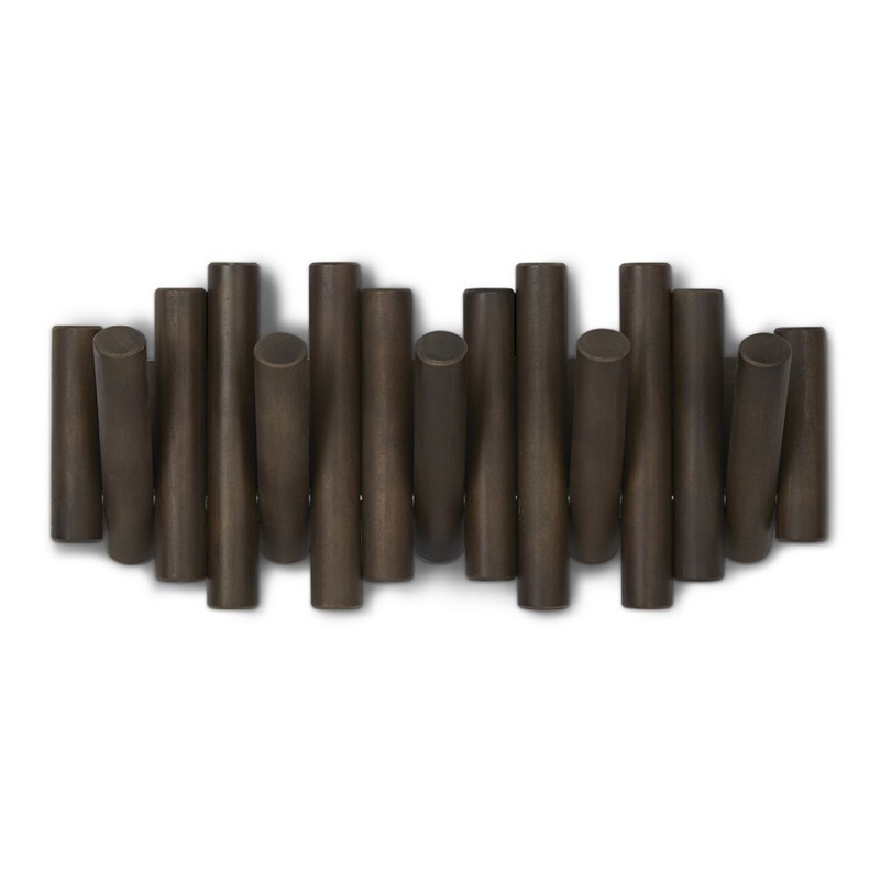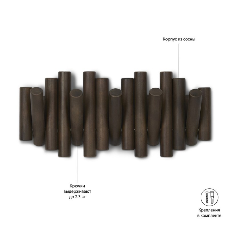 Настенная вешалка Picket превращает функциональность в искусство и идеально подходит для всех, кто ценит красоту в каждой детали. Такой аксессуар не только поможет сделать пространство более организованным, но и станет его стильным акцентом. Вешалка состоит из сосновых колышков разных размеров и оснащена пятью откидными крючками, каждый из которых выдерживать вес до 2,3 кг. Если крючки не используются, их можно легко убрать, превратив функциональный элемент в арт-объект. В комплект входит необходимый крепеж для быстрой и простой установки.Используйте вешалку Picket от Umbra в прихожей для пальто и сумок, в спальне для аксессуаров или в гостиной для декоративных элементов – она прекрасно смотрится в любом интерьере.Материал: сосна, этиленвинилацетат. Размеры: 38х4х17 см. Цвет: состаренный орех. Дизайн: Sung Wook Park.Пыль и загрязнения можно удалять при помощи мягкого влажного материала. Запрещается использование абразивов и агрессивной бытовой химии.