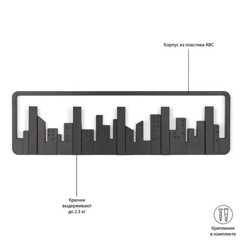 Вешалка настенная skyline, 50 см, черная, 5 крючков (артикул 1877)
