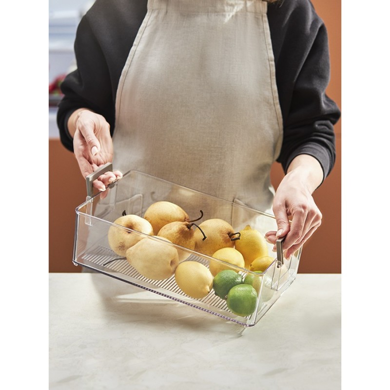 Органайзер Keep in от бренда Smart Solutions поможет в поддержании порядка в вашем холодильнике, обеспечит удобное хранение продуктов и быстрый доступ к ним в любой момент.Особенности и преимущества:- Выполнен из безопасных, простых в уходе, устойчивых к износу и температурным воздействиям материалов – термопластика и полипропилена. - Благодаря эргономичной форме позволяет эффективно использовать пространство, при этом не занимает много места. - С двух сторон оснащен ручками, которые делают его перемещение простым и удобным.Материалы: термопластик, полипропилен. Размеры: 36,8х21,2х10,5 см. Объем: 7,5 л.От загрязнений органайзер рекомендуется очищать вручную в теплой мыльной воде при помощи мягкой губки. Запрещается использование абразивных материалов и агрессивной бытовой химии.