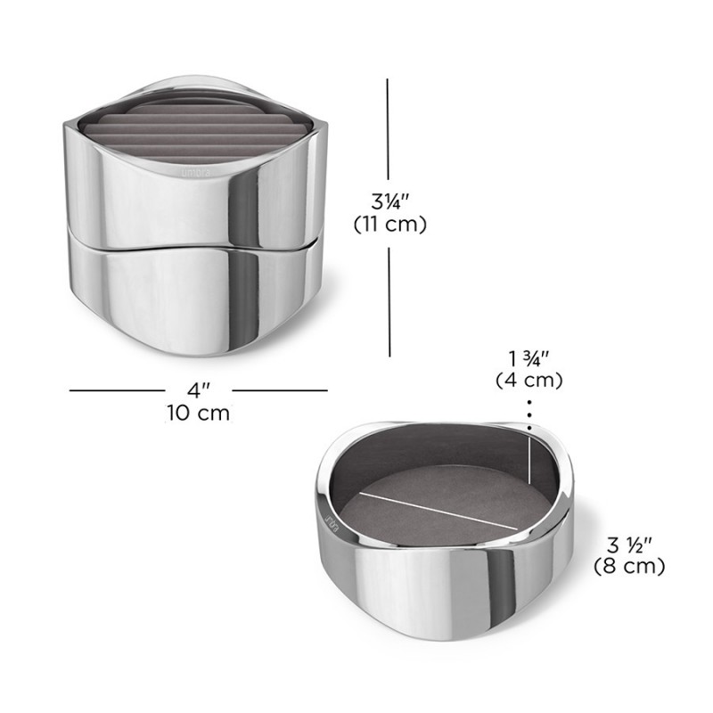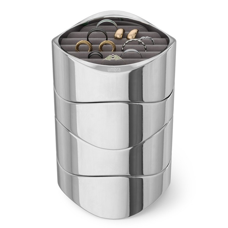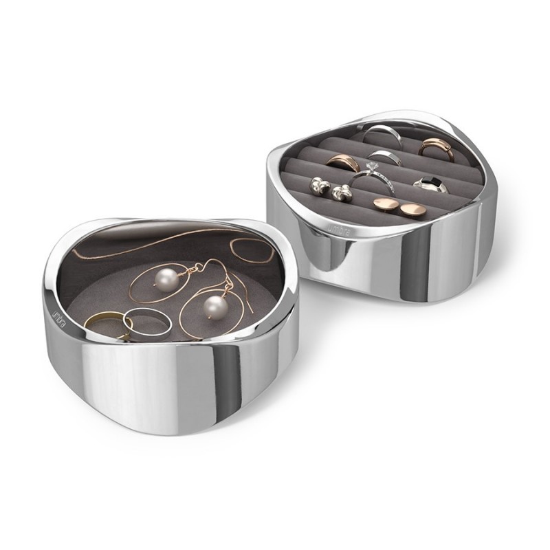 Органайзер для украшений Wavy – великолепное сочетание элегантности и функционального дизайна. Выполненный в цвете “хром”, он станет стильным акцентом на вашем туалетном столике и будет прекрасно гармонировать с другим декором. Органайзер имеет разборную конструкцию – вы можете легко разделить его на две составные части, каждая из которых имеет мягкое, бархатистое основание для бережного хранения колец, сережек и браслетов.Материалы: алюминий, бархат. Размеры: 10х10х8 см. Цвет: хром.Пыль и загрязнения можно удалять при помощи мягкого влажного материала. Запрещается использование абразивов и агрессивной бытовой химии.