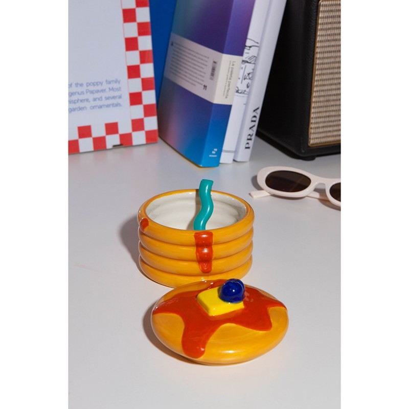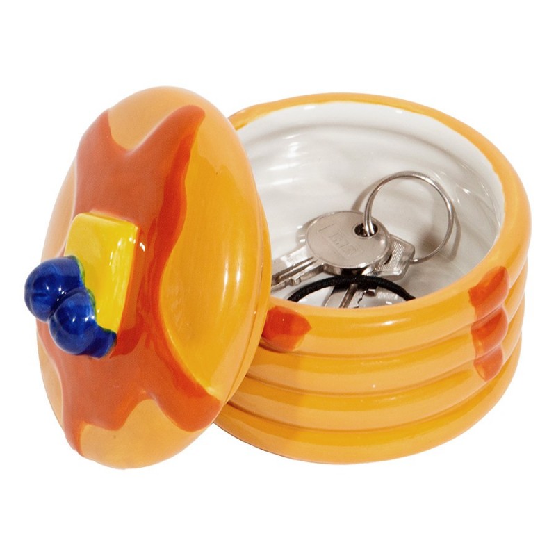 Шкатулка Pancakes из коллекции Good Morning создаст в вашем интерьере красочную атмосферу и поднимет настроение. Выполненная из прочной керамики в виде панкейков, она обязательно привлечет внимание и идеально подойдет для хранения украшений или других мелких предметов.Особенности и преимущества:- Изготовлена из устойчивой к износу и экологичной керамики. - Имеет необычный дизайн в виде панкейков, который привлекает внимание. - Подходит для хранения ценных вещей.Материал: керамика. Размер: 12,5x13x9 см.Рекомендуется очищать при помощи влажной мягкой ткани или мыть вручную при помощи жидкого средства. Запрещается использование агрессивной бытовой химии.
