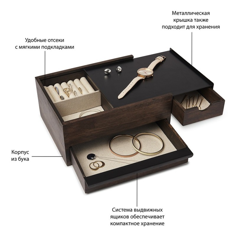 Шкатулка stowit, черная/орех