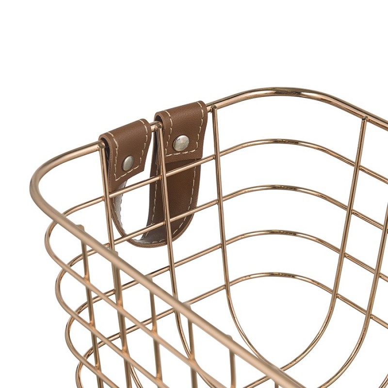 Корзина Benoy поможет в поддержании порядка в ванной комнате и акцентирует внимание на стильном оформлении интерьера. Изделие из железной проволоки с износостойким порошковым покрытием отличается привлекательным видом и отличными эксплуатационными характеристиками, такими как устойчивость к повреждениям и коррозии. Корзину можно использовать для хранения предметов личной гигиены, различных аксессуаров и декора. Облегчают переноску и делают дизайн интересным ручки из полиуретана.Материалы: железо, полиуретан. Размеры: 25х17х13 см. Цвет: золотистый.Пыль и загрязнения можно удалять при помощи мягкого влажного материала. Запрещается использование абразивов и агрессивной бытовой химии.