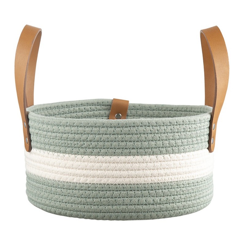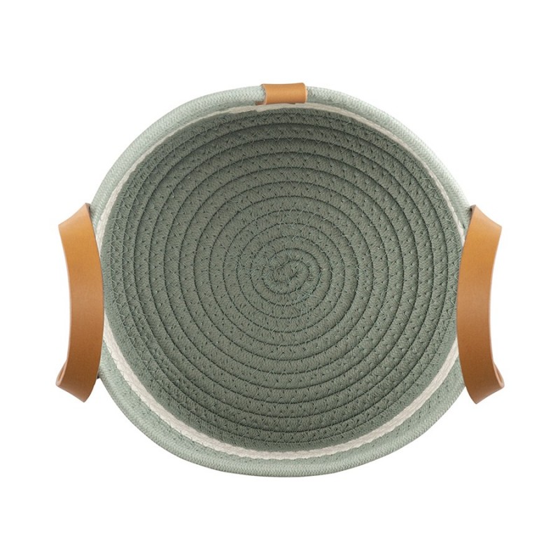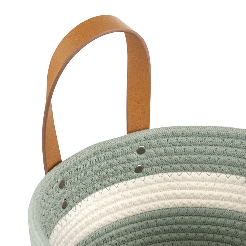 Корзина Helly – прекрасный вариант для хранения различных предметов. Благодаря стильному дизайну такой контейнер отлично вписывается в современный интерьер гостиной, спальни или прихожей. Изделие выполнено из хлопковой нити с добавлением полиэстера, что гарантирует ему прочность, устойчивость к истиранию и привлекательный вид на протяжении всего срока службы. Изюминку корзине придают плетеный корпус и ручки из полиуретана, которые также обеспечивают удобную переноску.Как разгладить заломы на текстильной корзине:1. Достаньте корзину из транспортной упаковки. 2. Расправьте ее и распрямите заломы вручную, насколько это возможно. 3. Плотно заполните корзину подушками или любыми мягкими материалами. 4. Через несколько дней она вернется к изначальному виду. 5. Для устранения заломов вы также можете использовать отпариватель.Размеры корзины могут отличаться от заявленных на ± 1 см.Материалы: 60% полиэстер, 35% хлопок, 5% полиуретан. Диаметр: 26 см. Высота: 13 см. Цвет: бежевый/зеленый. Длина ручек: 11 см.Для удаления загрязнений можно использовать мягкую щетку или губку с мыльным раствором воды. Допускается ручная стирка.