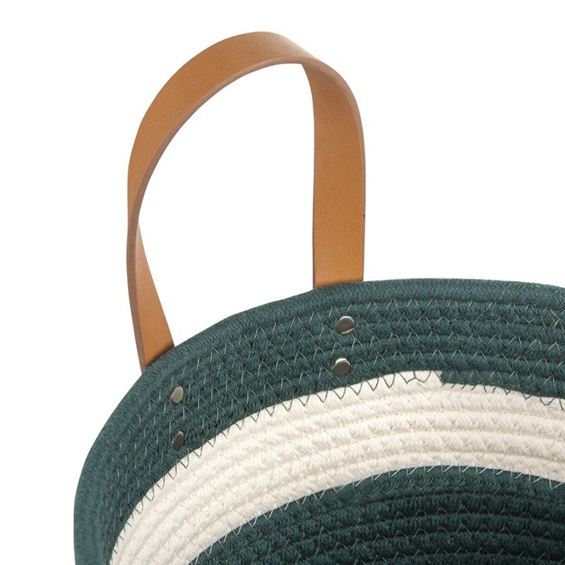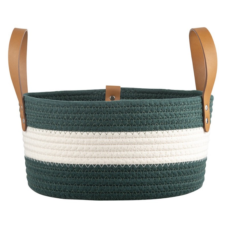 Корзина Helly – прекрасный вариант для хранения различных предметов. Благодаря стильному дизайну такой контейнер отлично вписывается в современный интерьер гостиной, спальни или прихожей. Изделие выполнено из хлопковой нити с добавлением полиэстера, что гарантирует ему прочность, устойчивость к истиранию и привлекательный вид на протяжении всего срока службы. Изюминку корзине придают плетеный корпус и ручки из полиуретана, которые также обеспечивают удобную переноску.Как разгладить заломы на текстильной корзине:1. Достаньте корзину из транспортной упаковки. 2. Расправьте ее и распрямите заломы вручную, насколько это возможно. 3. Плотно заполните корзину подушками или любыми мягкими материалами. 4. Через несколько дней она вернется к изначальному виду. 5. Для устранения заломов вы также можете использовать отпариватель.Размеры корзины могут отличаться от заявленных на ± 1 см.Материалы: 60% полиэстер, 35% хлопок, 5% полиуретан. Диаметр: 28 см. Высота: 14 см. Цвет: бежевый/зеленый. Длина ручек: 11 см.Для удаления загрязнений можно использовать мягкую щетку или губку с мыльным раствором воды. Допускается ручная стирка.
