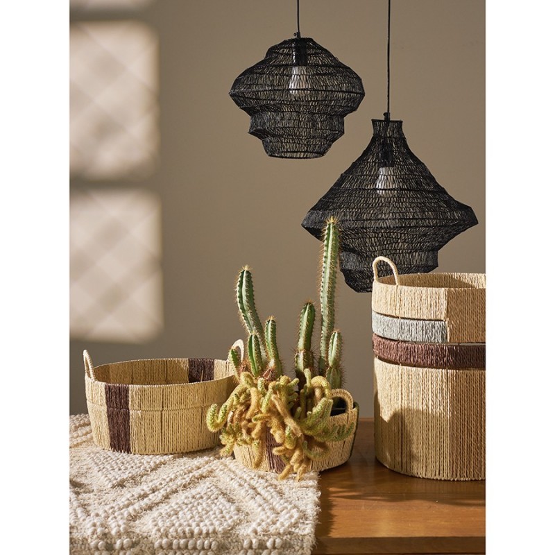 Корзина Bodhran Chocolate из коллекции Ethnic создана, чтобы украсить ваш дом и организовать удобное хранение белья и различных предметов. Этот полезный в быту аксессуар поможет воплотить мечту о красивом, уютном интерьере и за счет плетеного дизайна станет его акцентным элементом.Особенности и преимущества:- Изделие имеет железный каркас, благодаря чему обладает повышенной прочностью, хорошей устойчивостью, долго служит и не боится деформации. - Плетение из шпагата делает дизайн привлекательным и обеспечивает оптимальную вентиляцию, предотвращая скопление влаги внутри. - За счет нейтральной цветовой гаммы корзина без труда интегрируется в различные интерьерные решения, а удобные ручки облегчают ее перемещение. - Корзину можно использовать для хранения предметов в любой из комнат и как самостоятельный элемент декора. - Аксессуары в этническом стиле позволяют создать уникальный интерьер, отражающий личные предпочтения и вкусы своего владельца.Материалы: бумажный шпагат, железо. Размеры: 34x24x17 см.! В случае попадания воды, незамедлительно протереть и высушить. ! Избегать взаимодействия с острыми предметами.
