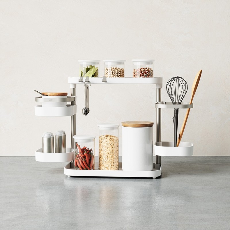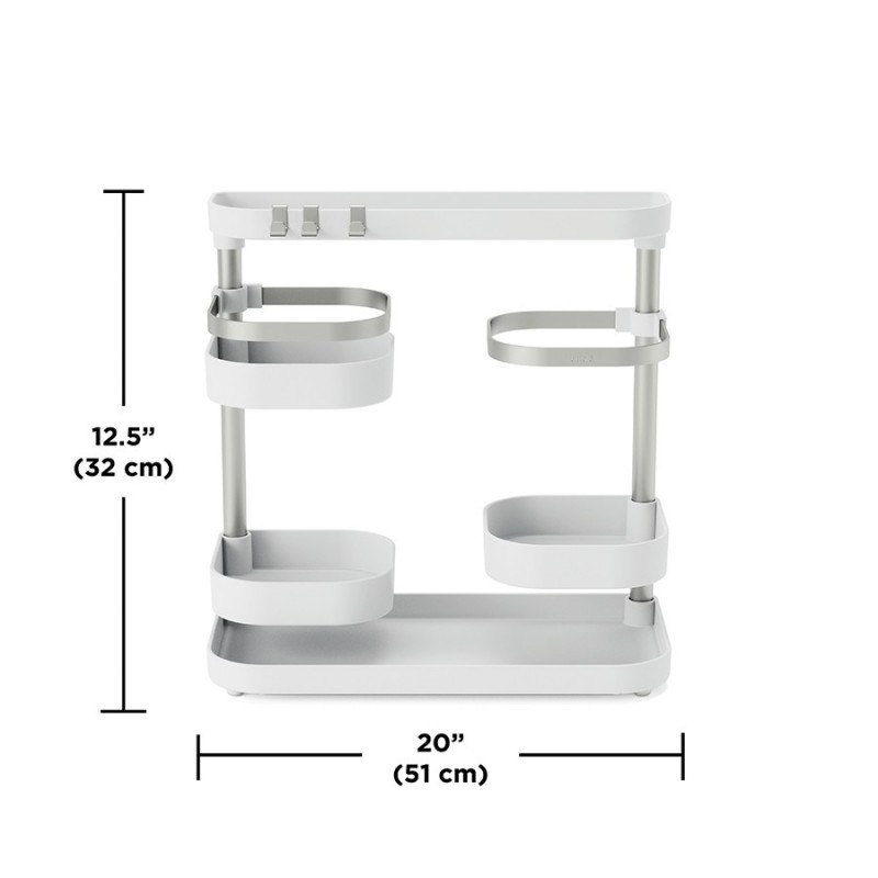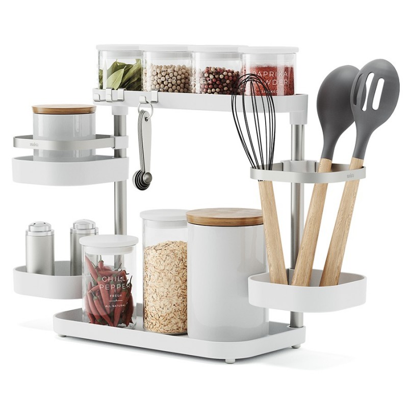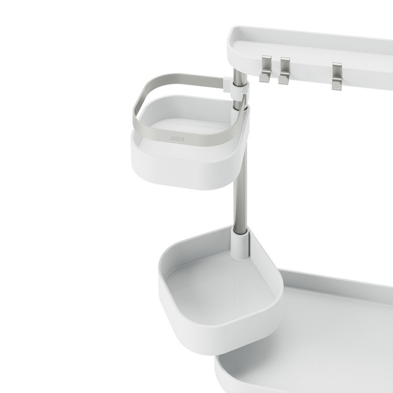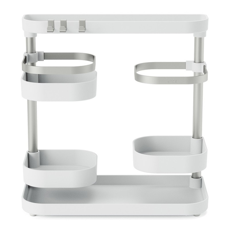Holster – универсальный органайзер с удобной многоуровневой конструкцией для хранения различных бытовых предметов: кухонные аксессуары, бытовая химия, канцелярские принадлежности и многое другое. Для максимального удобства средние лотки можно регулировать по высоте и расположению вдоль стойки. Сочетание прочного и устойчивого к износу АБС-пластика и нержавеющей стали обеспечивает изделию долгий срок службы и привлекательный внешний вид на протяжении всего периода эксплуатации. Компактность и современный дизайн позволяют легко интегрировать модель в любое пространство. Органайзер поставляется в разобранном виде, быстро и легко собирается.Материалы: АБС-пластик, сталь, термоэластопласт. Размеры: 51х16х32 см. Вес: 780 г. Цвет: белый/никель.Пыль и загрязнения с поверхностей можно удалять при помощи мягкого влажного материала.