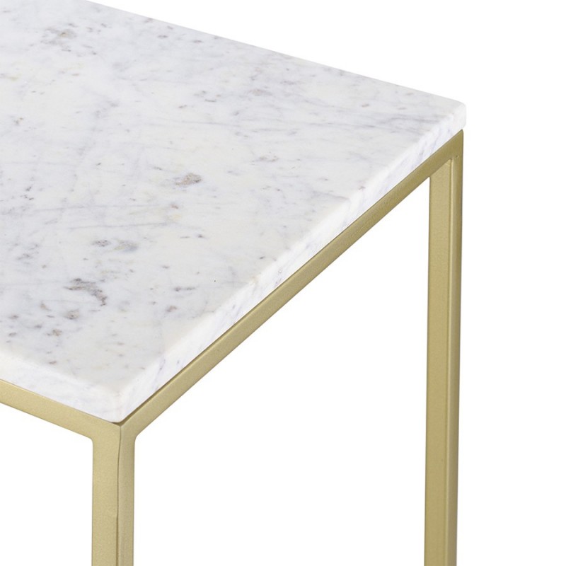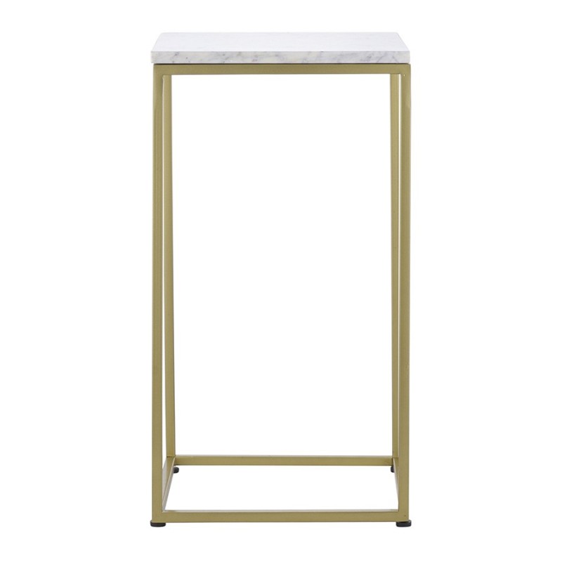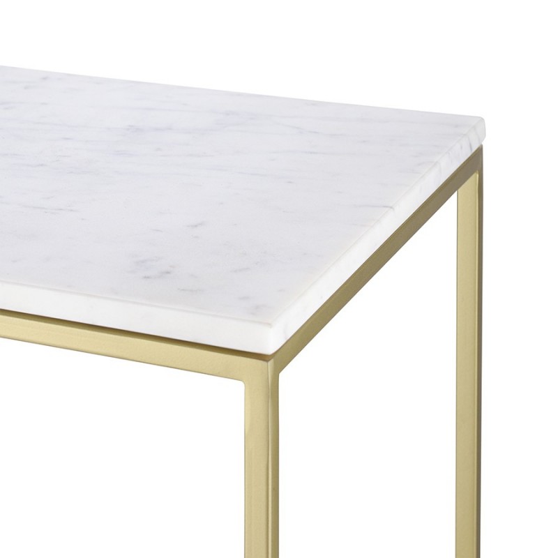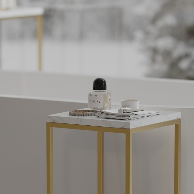 Кофейные столики Mayen Gold от бренда Bergenson Bjorn – стильное и функциональное решение для интерьера с современным дизайном. Мебель привлекает внимание четкой геометрией и интересным сочетанием материалов. Такой комплект идеально подходит для оформления жилых и коммерческих пространств.Особенности и преимущества:- За счет столешницы из мрамора и основания золотистого цвета модель выглядит презентабельно и элегантно. - Прочный каркас из железа делает конструкцию практичной, надежной и долговечной. - Специальная форма гарантирует хорошую устойчивость мебели на любых поверхностях. - Столики разной высоты великолепно дополняют друг друга, делая пространство более стильным и функциональным.! Обращаем ваше внимание, что эти предметы мебели изготовлены вручную и могут быть не идеальны. Небольшие неровности, потертости и различия в цвете – это не брак, а индивидуальная особенность товаров, произведенных ручным способом.Материалы: железо, мрамор. Размеры: 30х30х56 см и 34х34х75 см. Максимальная нагрузка: 20 кг. Цвет: белый/золотистый.Важно!Натуральный мрамор не обладает водоотталкивающим эффектом. Структура материала пористая, из-за чего он может впитывать жидкости и другие вещества. Чтобы защитить поверхность от пятен, ее можно обработать специальными защитными средствами (пропитки для мрамора).Как ухаживать за поверхностью из мрамора:1) Чтобы очистить поверхность из мрамора, протрите ее слегка влажной тканью, избегая длительного контакта с водой. Можно использовать мягкие чистящие жидкости, но не абразивные и не кислотные средства. 2) Образовавшиеся пятна можно очистить с помощью специальных средств для каменных поверхностей. 3) Защитная обработка: регулярно наносите защитный слой из пропитки для мрамора. Это позволит защитить поверхность и сделать ее более герметичной, устойчивой к появлению пятен. Можно использовать любую пропитку, которая подходит для натурального мрамора. 4) Использовать пропитку рекомендуется 1 раз в 6–12 месяцев, но не менее 1 раза в год, чтобы поддерживать ее защитный барьер от влаги, масел и грязи. Эта профилактическая мера помогает сохранить идеальный внешний вид камня и продлить срок его службы. 5) Постарайтесь избегать попадания масла и кислотных жидкостей на поверхность столешницы. Любую пролитую жидкость вытирайте насухо сразу же. 6) Во избежание появления новых пятен, используйте подставки под блюда, кружки, бокалы. 7) Не ставьте горячие и холодные емкости непосредственно на столешницу. 8) Не режьте на столешнице.