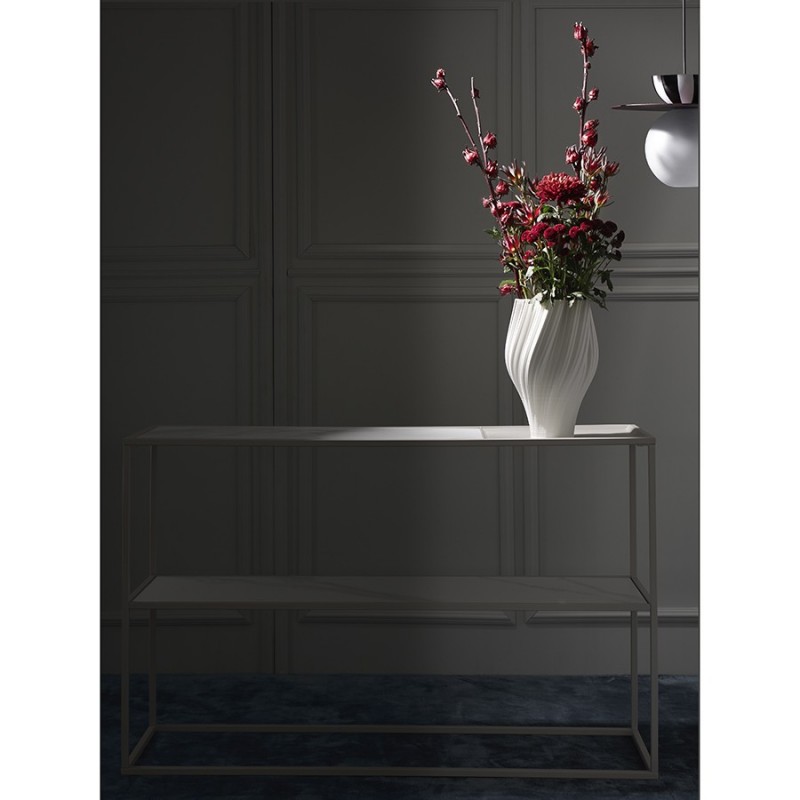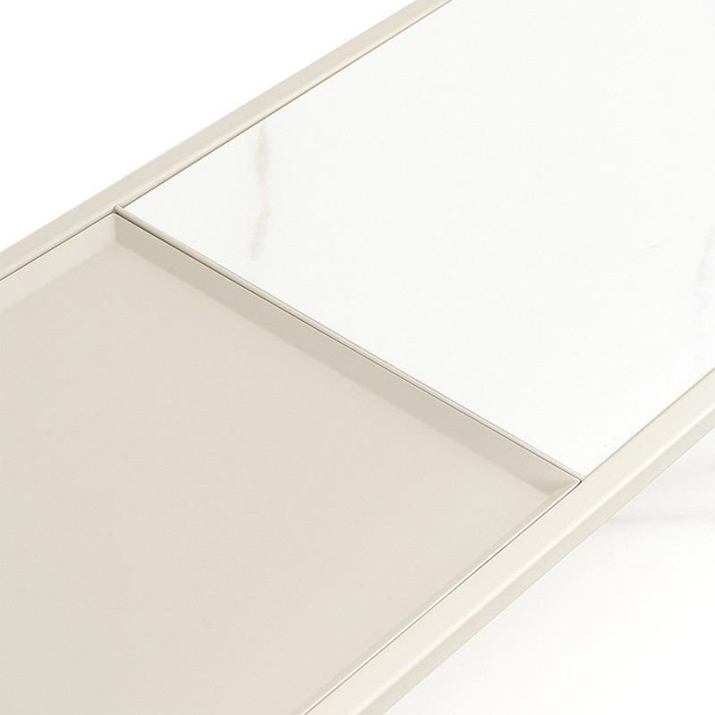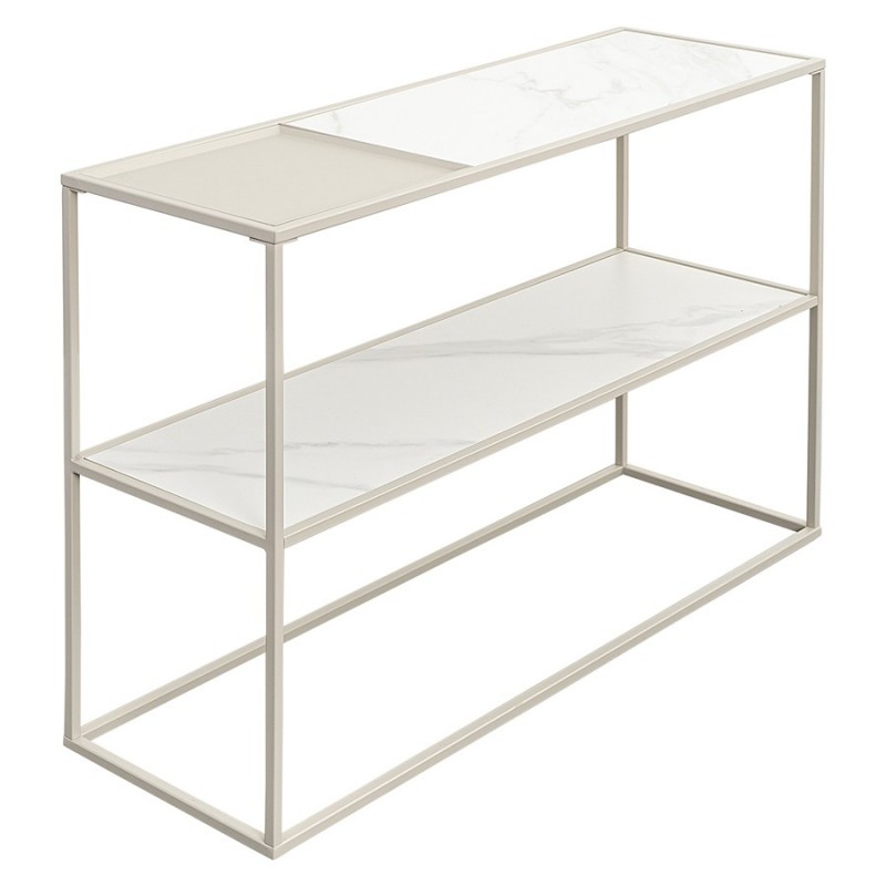 Стол консольный Mayen от бренда Bergenson Bjorn – стильное и функциональное решение для интерьера с современным дизайном. Мебель привлекает внимание четкой геометрией и интересным сочетанием материалов. Модель идеально подходит для оформления жилых и коммерческих пространств.Особенности и преимущества:- Прочный стальной каркас делает конструкцию практичной, надежной и долговечной. - Столешницы из углеродистой стали и керамики обладают высокой прочностью и устойчивостью к повреждениям. - Материалы не боятся сколов, царапин и температурных воздействий, что делает стол отличным вариантом для активного использования. - Специальная форма гарантирует хорошую устойчивость мебели на любых поверхностях. - Две столешницы позволяют разместить в одном месте большее количество предметов.Материалы: столешницы – углеродистая сталь, керамика; каркас – сталь с порошковым покрытием. Размеры: 120х35х76 см. Цвет: белый/бежевый.Пыль и загрязнения с поверхностей можно удалять при помощи мягкого влажного материала. Сразу после очищения мебель рекомендуется протереть сухой тканью. Запрещается применение жестких щеток, абразивов, порошкообразных и едких средств на основе кислот.