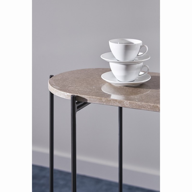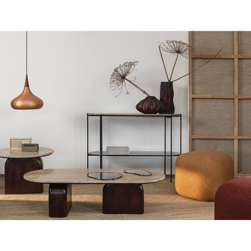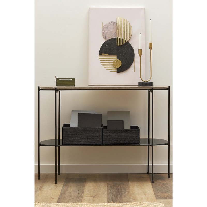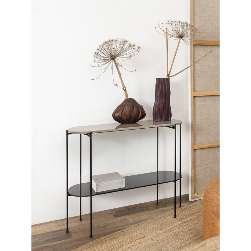 Стол консольный Sigryd от дизайнерского бренда Bergenson Bjorn идеально подходит для обустройства любых комнат в помещении. В гостиной он отлично будет смотреться у стены или рядом с диваном. Вы сможете разместить на нем рамки для фотографий, вазы, свечи и другие предметы для украшения пространства. В прихожей его можно поставить у дверей для хранения почты и других необходимых вещей. В спальне такой предмет мебели может выполнять функцию туалетного столика или комода.Особенности и преимущества:- Сочетание мрамора, стекла и железа обеспечивает модели презентабельный вид и высокую устойчивость к износу. - Материалы являются экологичными, практичными, долговечными, хорошо очищаются от загрязнений. - Благодаря компактности и небольшому весу стол можно легко перемещать и устанавливать в любом удобном месте. - Наличие двух столешниц позволяет размещать больше предметов.! Обращаем ваше внимание, что этот предмет мебели изготовлен вручную и может быть не идеален. Небольшие неровности, потертости и различия в цвете – это не брак, а индивидуальная особенность товара, произведенного ручным способом.Материал: железо, мрамор, стекло. Размеры: 113х33х79 см.Важно!Натуральный мрамор не обладает водоотталкивающим эффектом. Структура материала пористая, из-за чего он может впитывать жидкости и другие вещества. Чтобы защитить поверхность от пятен, ее можно обработать специальными защитными средствами (пропитки для мрамора).Как ухаживать за поверхностью из мрамора:1) Чтобы очистить поверхность из мрамора, протрите ее слегка влажной тканью, избегая длительного контакта с водой. Можно использовать мягкие чистящие жидкости, но не абразивные и не кислотные средства. 2) Образовавшиеся пятна можно очистить с помощью специальных средств для каменных поверхностей. 3) Защитная обработка: регулярно наносите защитный слой из пропитки для мрамора. Это позволит защитить поверхность и сделать ее более герметичной, устойчивой к появлению пятен. Можно использовать любую пропитку, которая подходит для натурального мрамора. 4) Использовать пропитку рекомендуется 1 раз в 6–12 месяцев, но не менее 1 раза в год, чтобы поддерживать ее защитный барьер от влаги, масел и грязи. Эта профилактическая мера помогает сохранить идеальный внешний вид камня и продлить срок его службы. 5) Постарайтесь избегать попадания масла и кислотных жидкостей на поверхность столешницы. Любую пролитую жидкость вытирайте насухо сразу же. 6) Во избежание появления новых пятен, используйте подставки под блюда, кружки, бокалы. 7) Не ставьте горячие и холодные емкости непосредственно на столешницу. 8) Не режьте на столешнице.