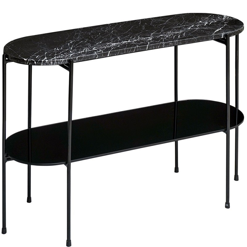 Стол консольный Sigryd от дизайнерского бренда Bergenson Bjorn идеально подходит для обустройства любых комнат в помещении. В гостиной он отлично будет смотреться у стены или рядом с диваном. Вы сможете разместить на нем рамки для фотографий, вазы, свечи и другие предметы для украшения пространства. В прихожей его можно поставить у дверей для хранения почты и других необходимых вещей. В спальне такой предмет мебели может выполнять функцию туалетного столика или комода.Особенности и преимущества:- Сочетание мрамора, стекла и железа обеспечивает модели презентабельный вид и высокую устойчивость к износу. - Материалы являются экологичными, практичными, долговечными, хорошо очищаются от загрязнений. - Благодаря компактности и небольшому весу стол можно легко перемещать и устанавливать в любом удобном месте. - Наличие двух столешниц позволяет размещать больше предметов.! Обращаем ваше внимание, что этот предмет мебели изготовлен вручную и может быть не идеален. Небольшие неровности, потертости и различия в цвете – это не брак, а индивидуальная особенность товара, произведенного ручным способом.Материал: железо, мрамор, стекло. Размеры: 98х35х71 см.Важно!Натуральный мрамор не обладает водоотталкивающим эффектом. Структура материала пористая, из-за чего он может впитывать жидкости и другие вещества. Чтобы защитить поверхность от пятен, ее можно обработать специальными защитными средствами (пропитки для мрамора).Как ухаживать за поверхностью из мрамора:1) Чтобы очистить поверхность из мрамора, протрите ее слегка влажной тканью, избегая длительного контакта с водой. Можно использовать мягкие чистящие жидкости, но не абразивные и не кислотные средства. 2) Образовавшиеся пятна можно очистить с помощью специальных средств для каменных поверхностей. 3) Защитная обработка: регулярно наносите защитный слой из пропитки для мрамора. Это позволит защитить поверхность и сделать ее более герметичной, устойчивой к появлению пятен. Можно использовать любую пропитку, которая подходит для натурального мрамора. 4) Использовать пропитку рекомендуется 1 раз в 6–12 месяцев, но не менее 1 раза в год, чтобы поддерживать ее защитный барьер от влаги, масел и грязи. Эта профилактическая мера помогает сохранить идеальный внешний вид камня и продлить срок его службы. 5) Постарайтесь избегать попадания масла и кислотных жидкостей на поверхность столешницы. Любую пролитую жидкость вытирайте насухо сразу же. 6) Во избежание появления новых пятен, используйте подставки под блюда, кружки, бокалы. 7) Не ставьте горячие и холодные емкости непосредственно на столешницу. 8) Не режьте на столешнице.