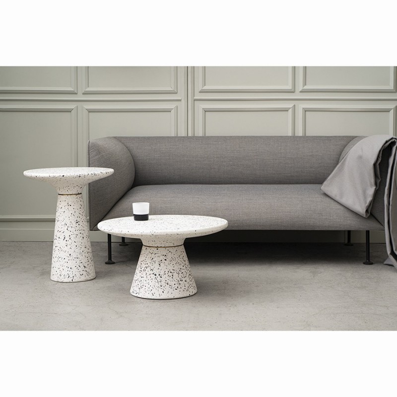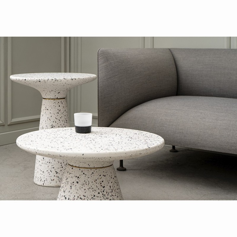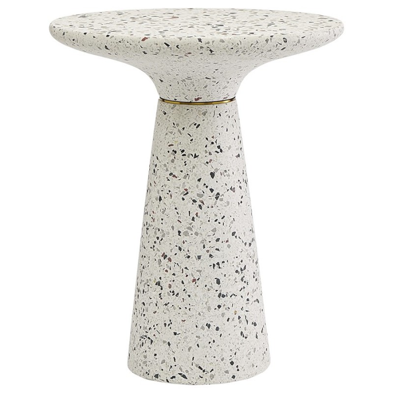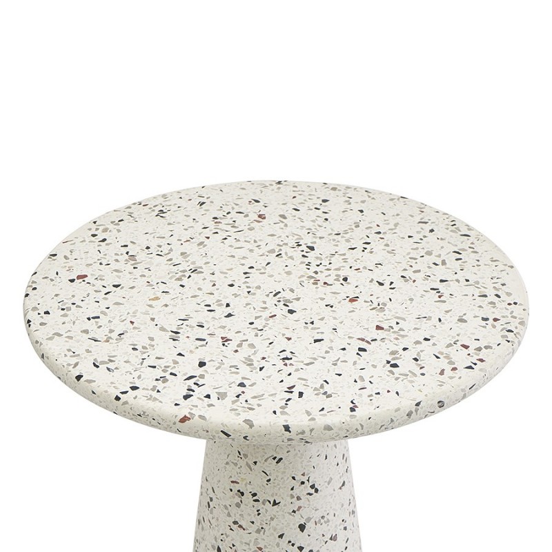 Столик кофейный Bayn – не просто предмет мебели, а интересный акцент интерьера, который прекрасно комбинируется с различными стилевыми решениями и позволяет играть на контрастах.Столешница и основание столика выполнены из материала терраццо, характеризующегося высокой прочностью и устойчивостью к износу. В его состав входят мелкие кусочки натурального камня, скрепленные цементным раствором с добавлением пластификаторов. Поверхность терраццо гладкая, приятная на ощупь, прекрасно смотрится и не требует сложного ухода. Столешница диаметром 45 см позволяет размещать все необходимое – чашки кофе, десерты и прочее. При этом модель имеет компактные размеры, что способствует экономии полезного пространства.Материал: терраццо. Размеры: 45х45х55 см. Цвет: белый.Пыль и загрязнения можно удалять с поверхностей при помощи мягкого влажного материала. После очищения стол рекомендуется протереть сухой тканью.